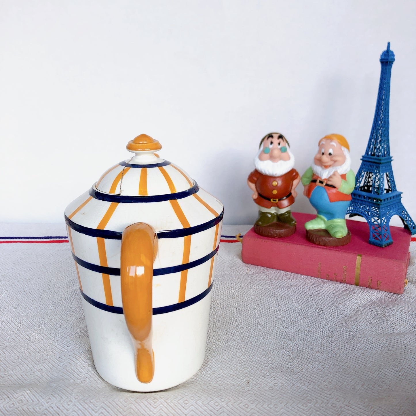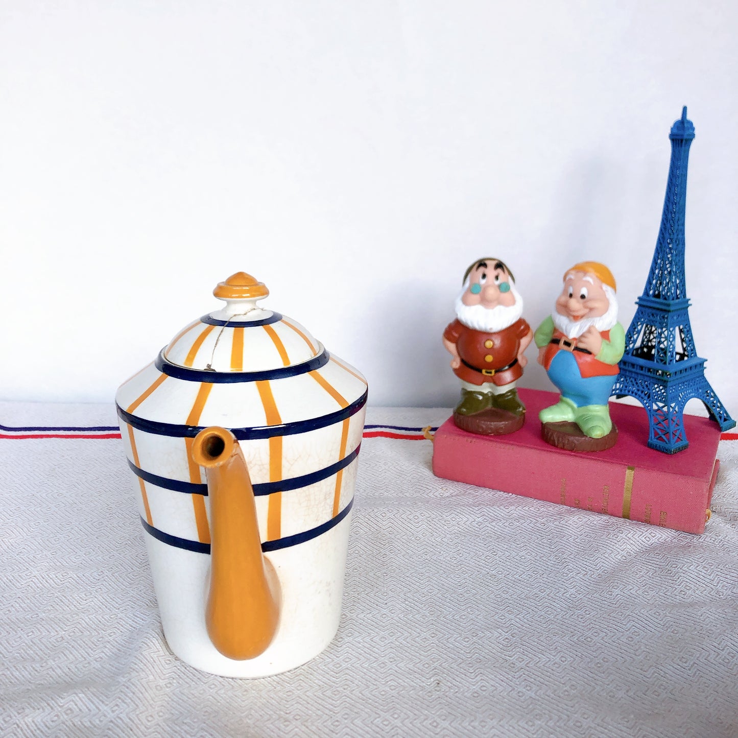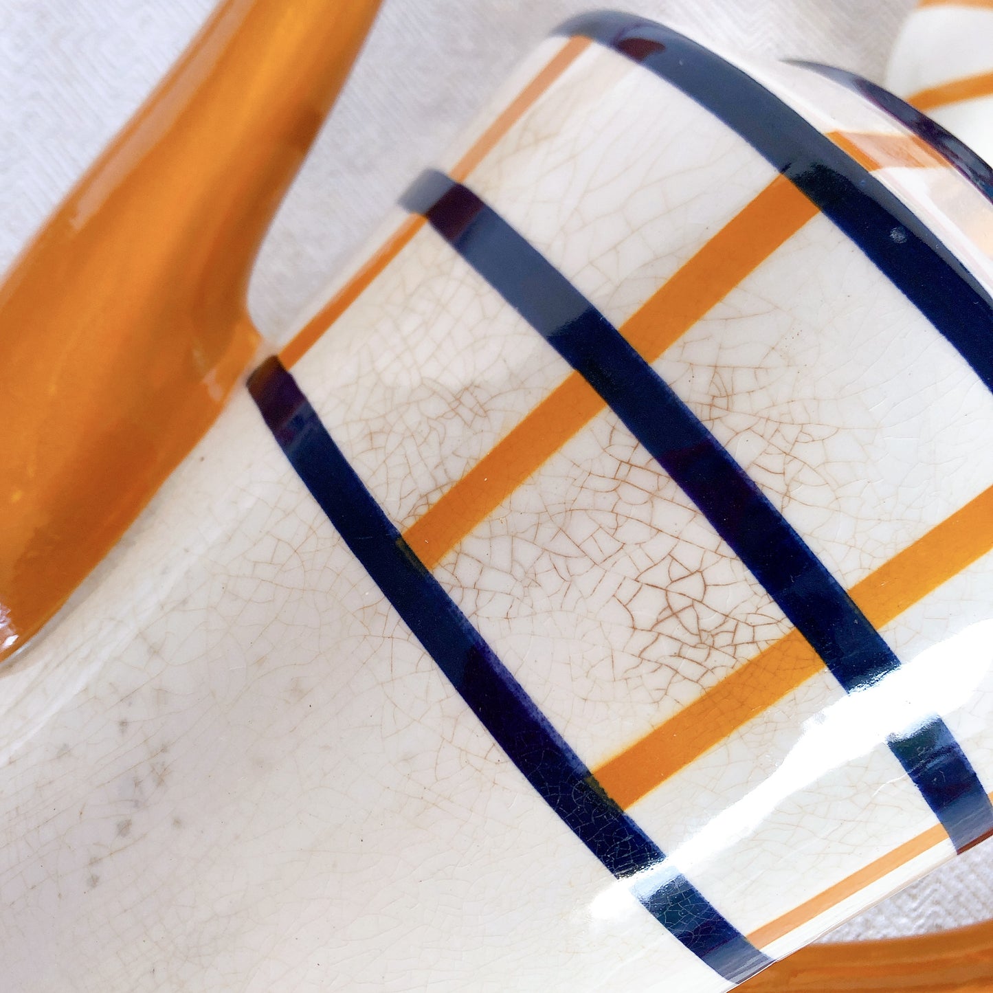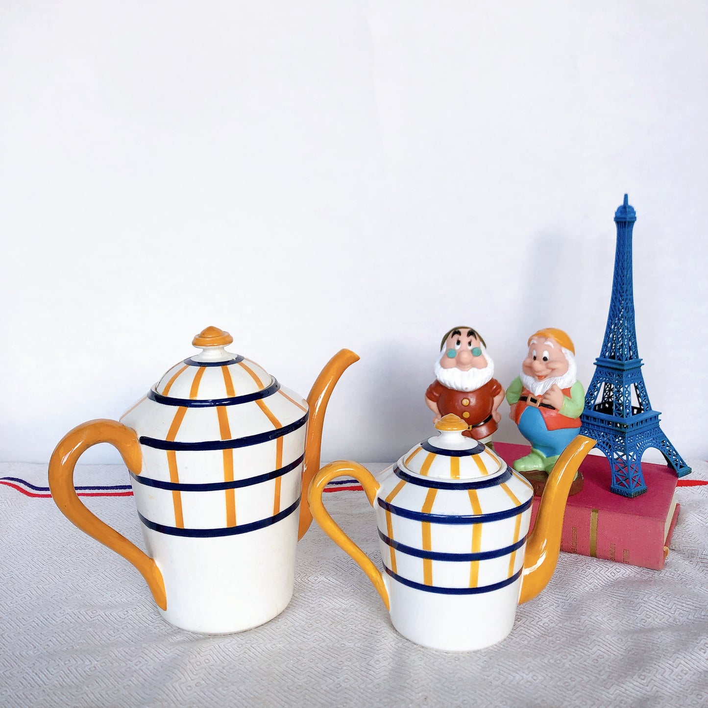 クレイユモントロー HBCM Béarn バスク柄 コーヒー/ティポット「イエロー・ダークブルー」フランスアンティーク ブロカント 蚤の市 バスク柄アンティーク