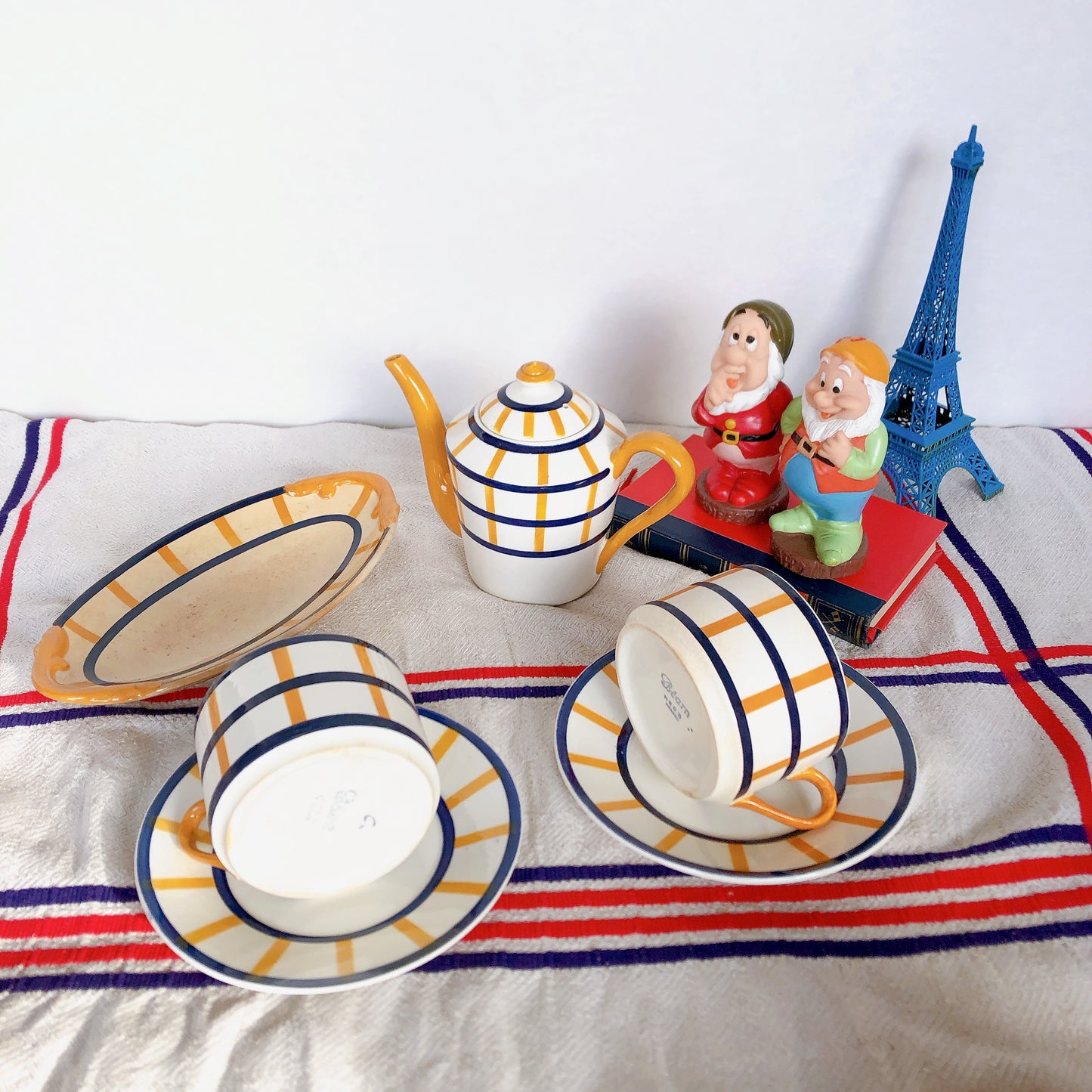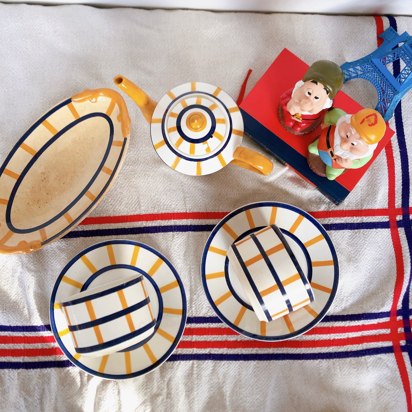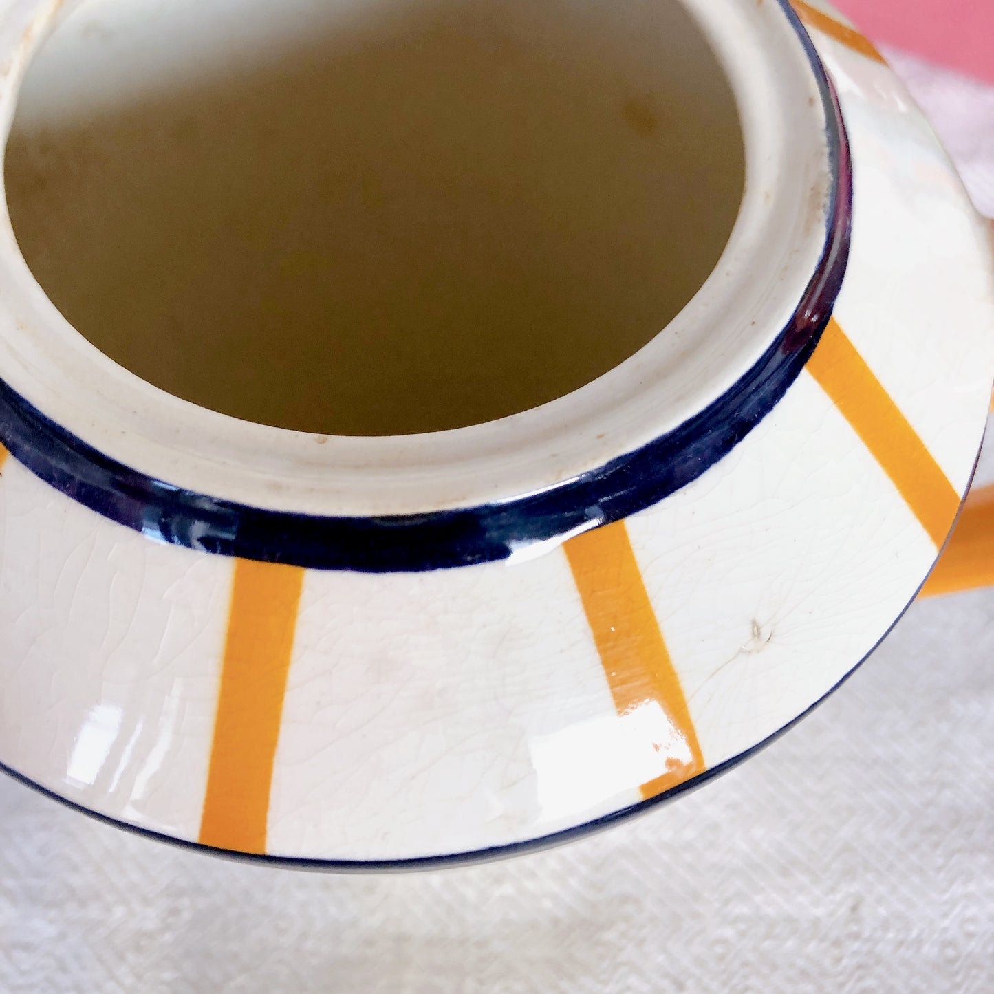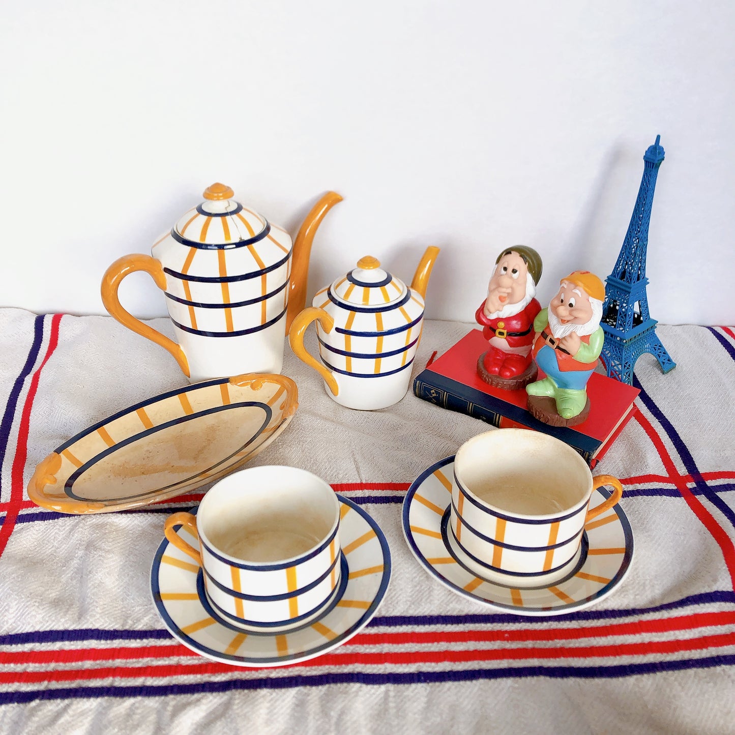 クレイユモントロー HBCM Béarn バスク柄 コーヒー/ティポット「イエロー・ダークブルー」フランスアンティーク ブロカント 蚤の市 バスク柄アンティーク