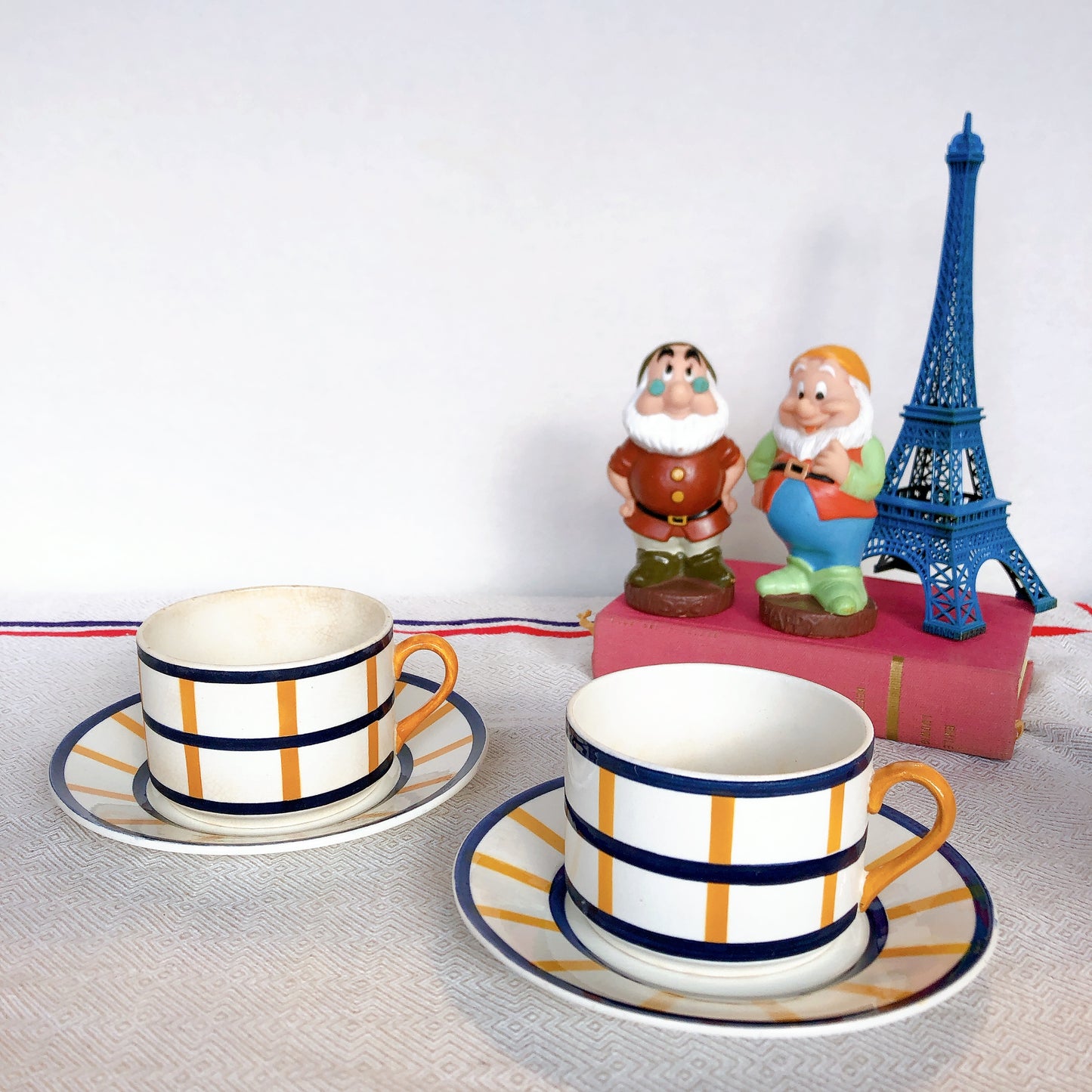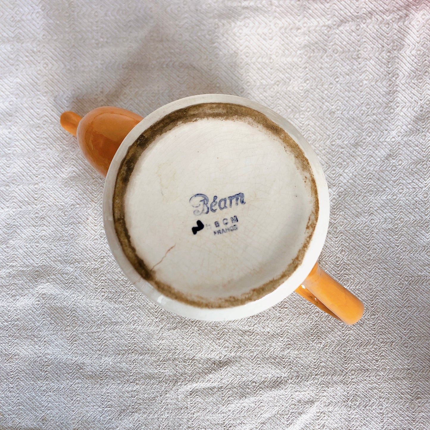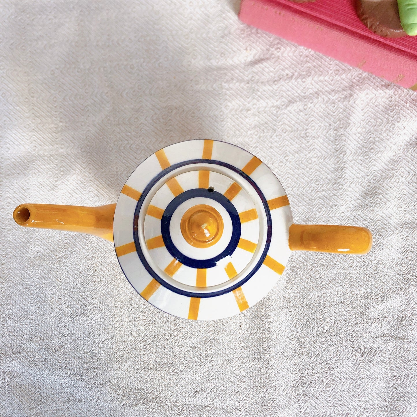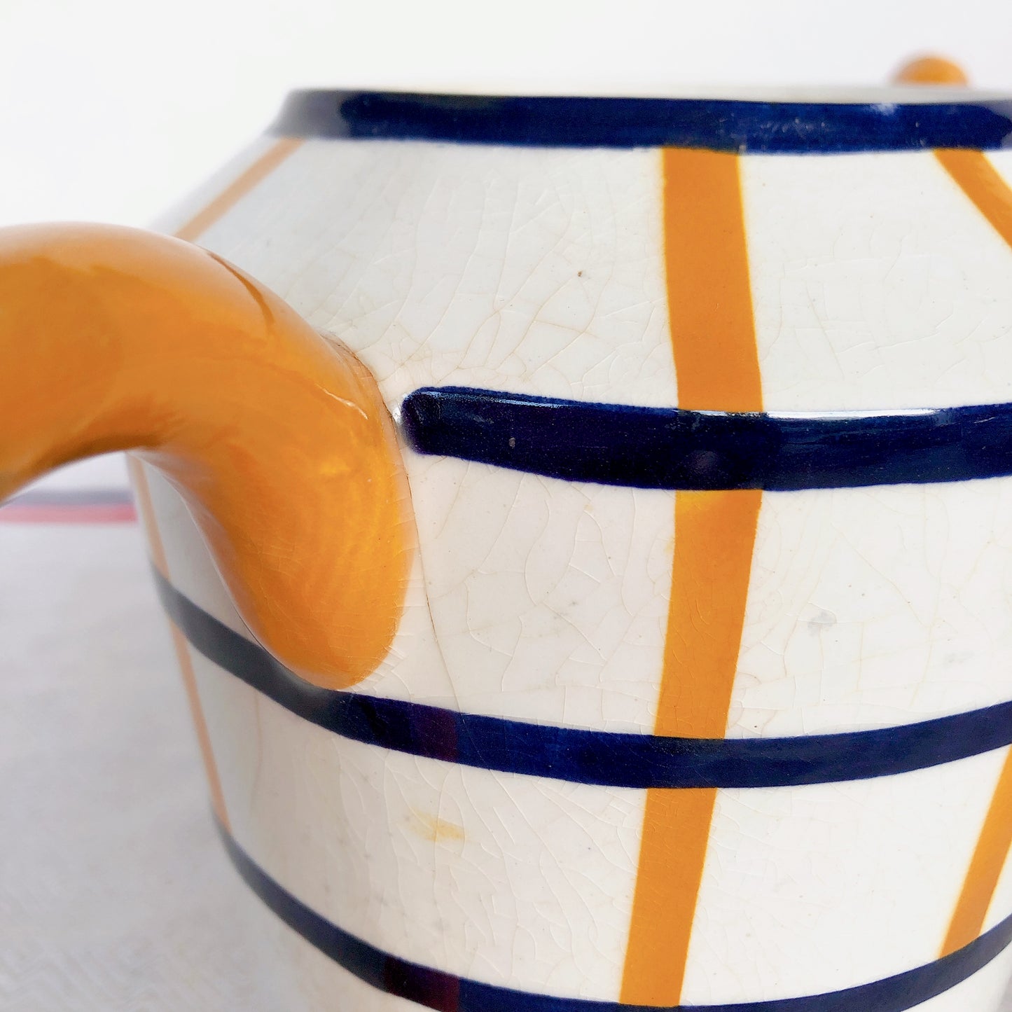 クレイユモントロー HBCM Béarn バスク柄 コーヒー/ティポット「イエロー・ダークブルー」フランスアンティーク ブロカント 蚤の市 バスク柄アンティーク