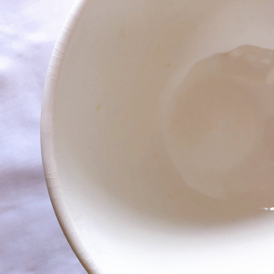 アンティーク品としては大変良好なコンディションです。新品同様。ダメージはなく、大変綺麗な状態です。近づいてよくみると縁のあたりに若干の貫入がみられます。注視しないと気付かない程度です。