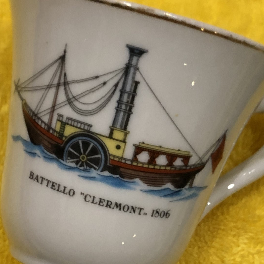 フランスヴィンテージのコーヒーカップ,6.8㎝です。プジョーのクラシックカーが描かれています。