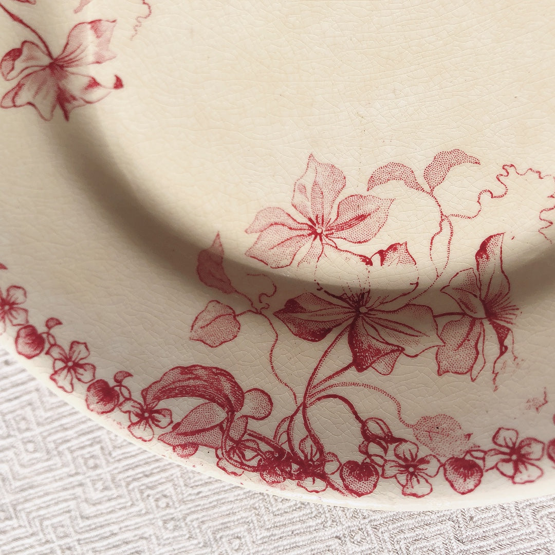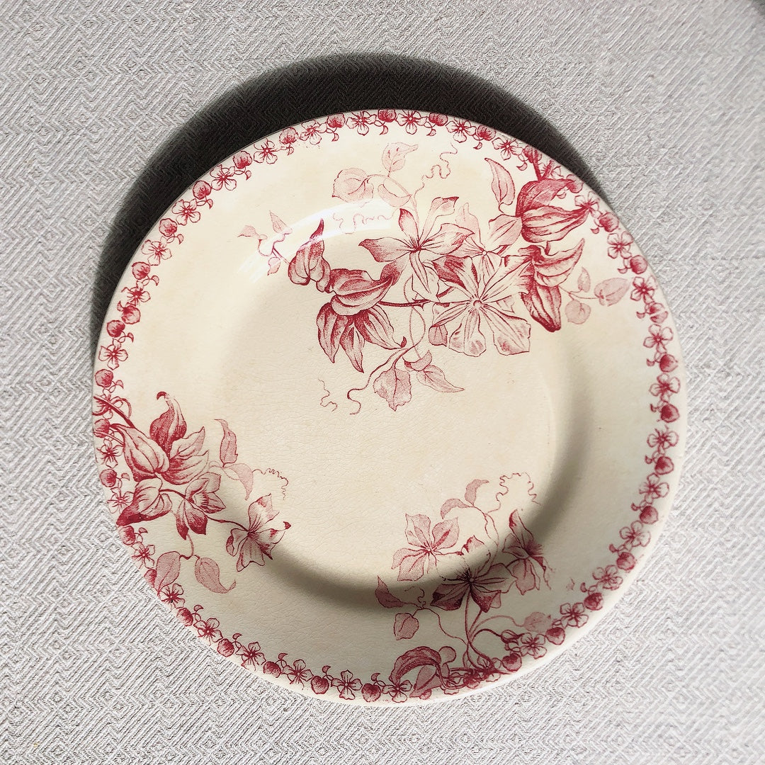 フランスアンティークプレート ヴィエイヤーボルドー クレマチス 人気の赤シリーズ フランスブロカント・蚤の市