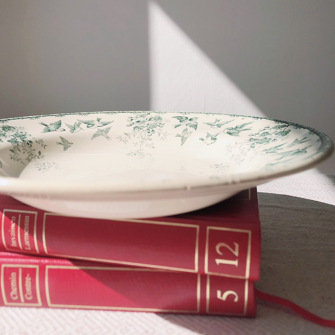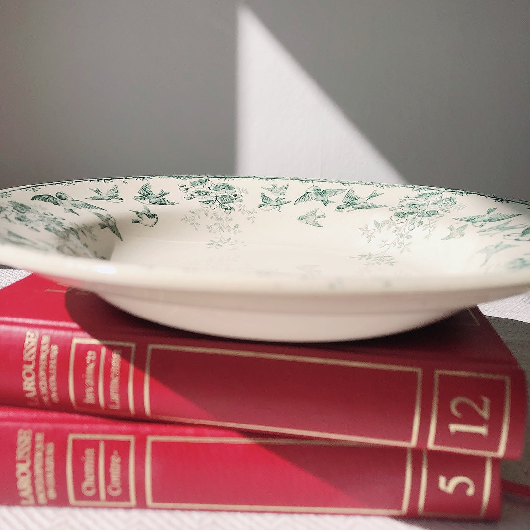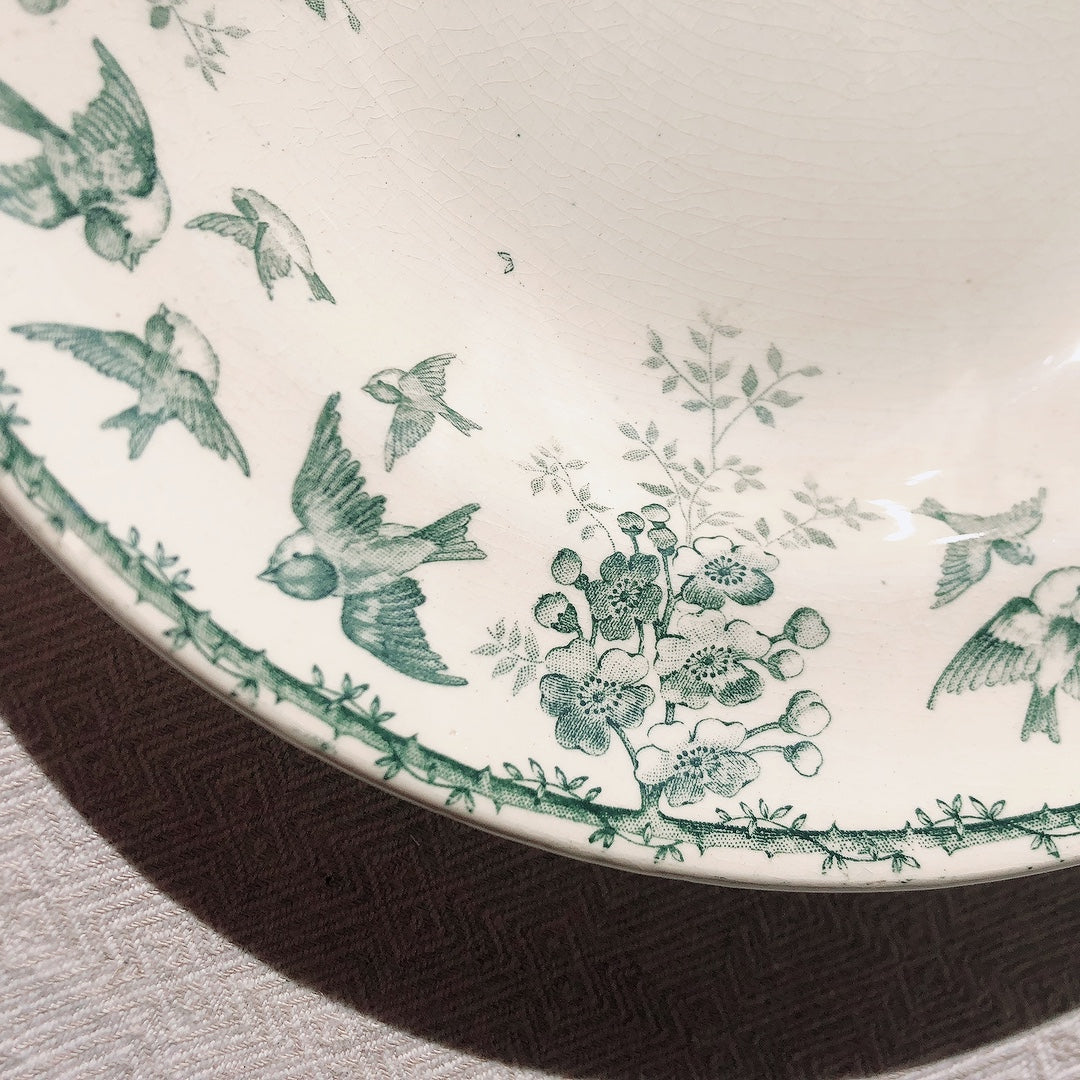 ご予約 ショワジー・ル・ロワ アンティークプレート 小鳥とワイルドローズ 深皿&平皿セット フランスアンティーク食器・プレート フランス直送アンティーク