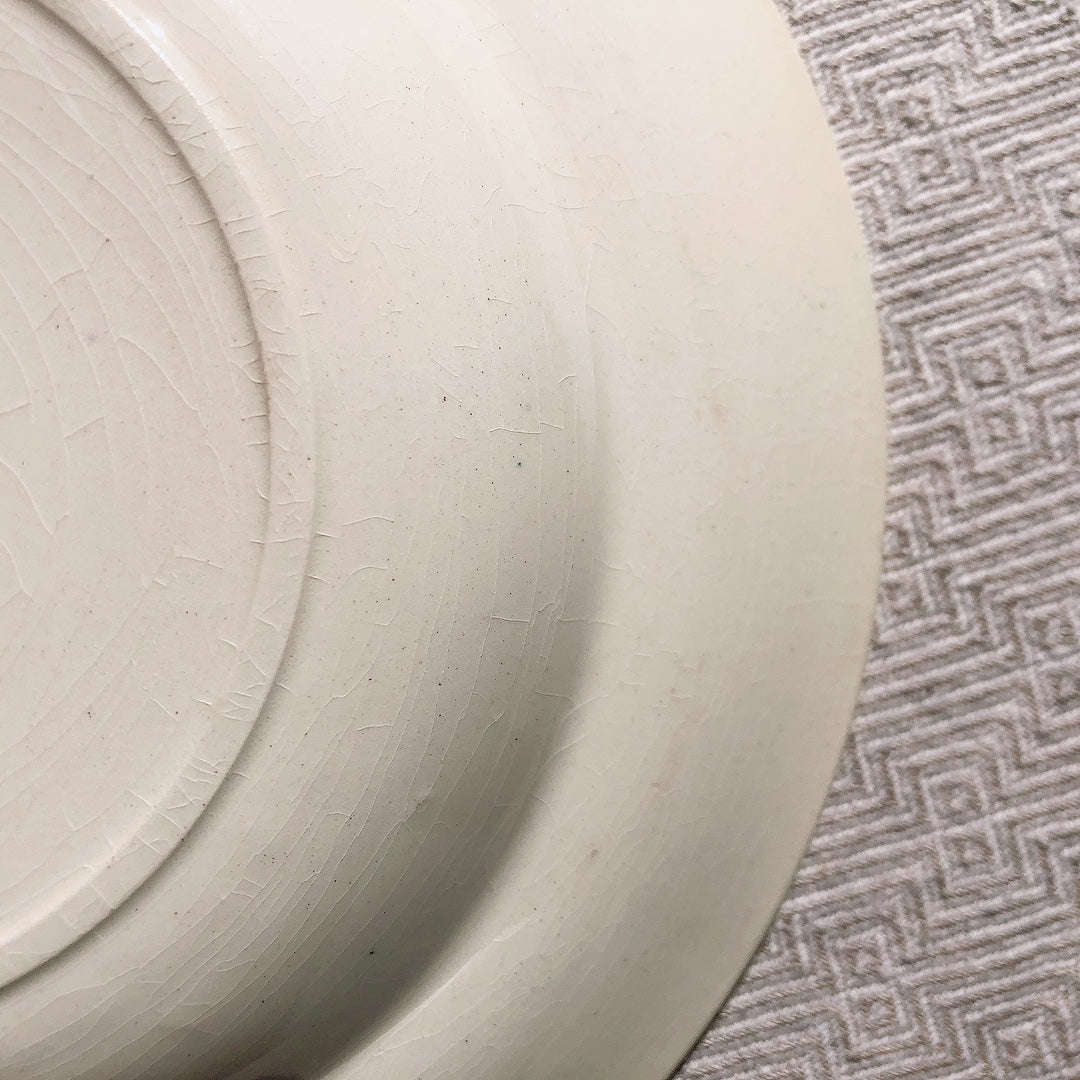 貫入、若干のシミがありますが、カトラリー傷のない未使用品かと思われる綺麗な状態です。
