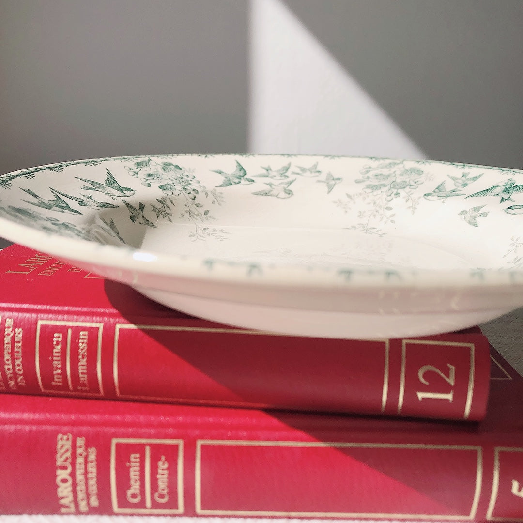 ショワジー・ル・ロワ アンティークプレート 小鳥とワイルドローズ 深皿 23cm D フランスアンティーク食器・プレート フランス直送アンティーク