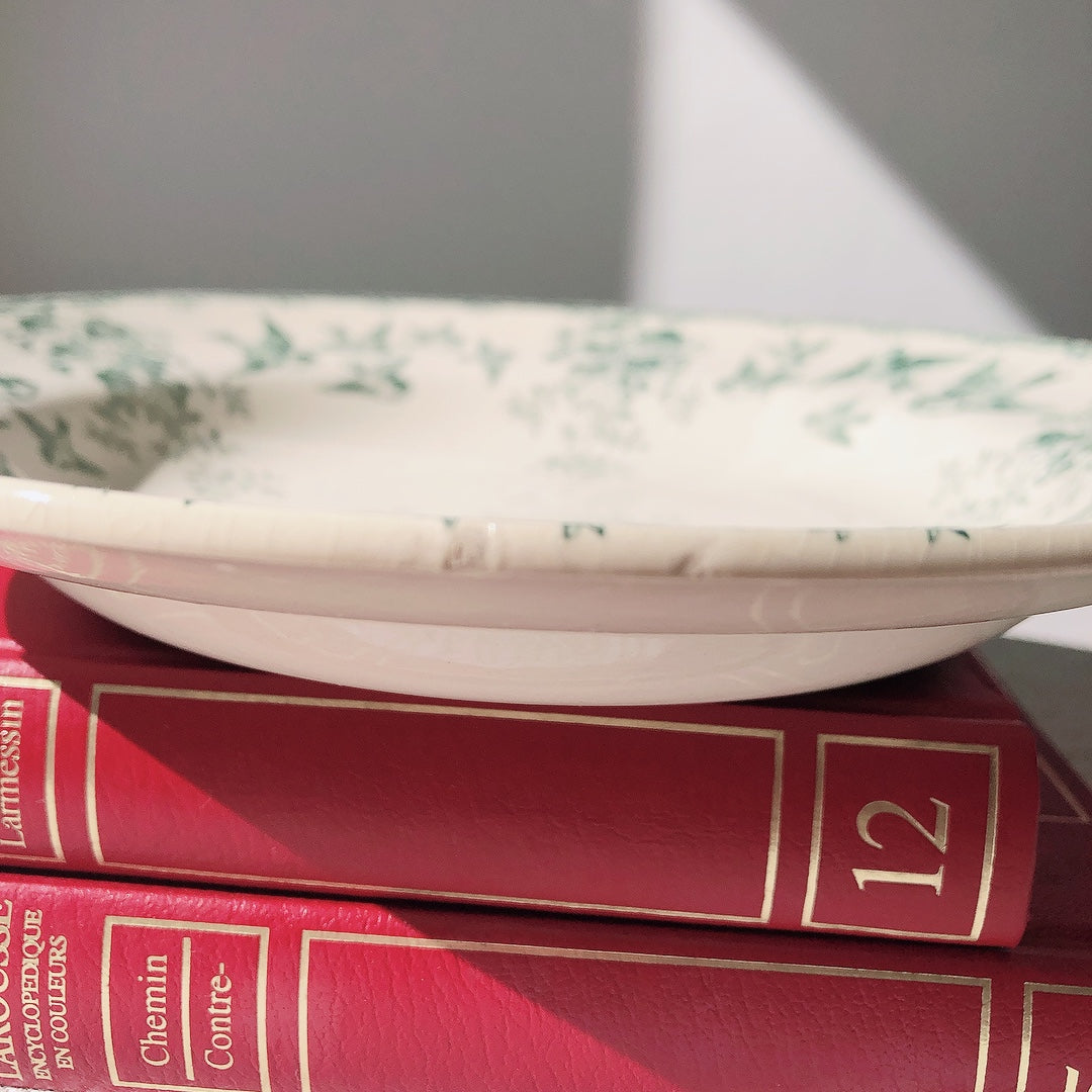 ご予約 ショワジー・ル・ロワ アンティークプレート 小鳥とワイルドローズ 深皿 23cm E フランスアンティーク食器・プレート フランス直送アンティーク
