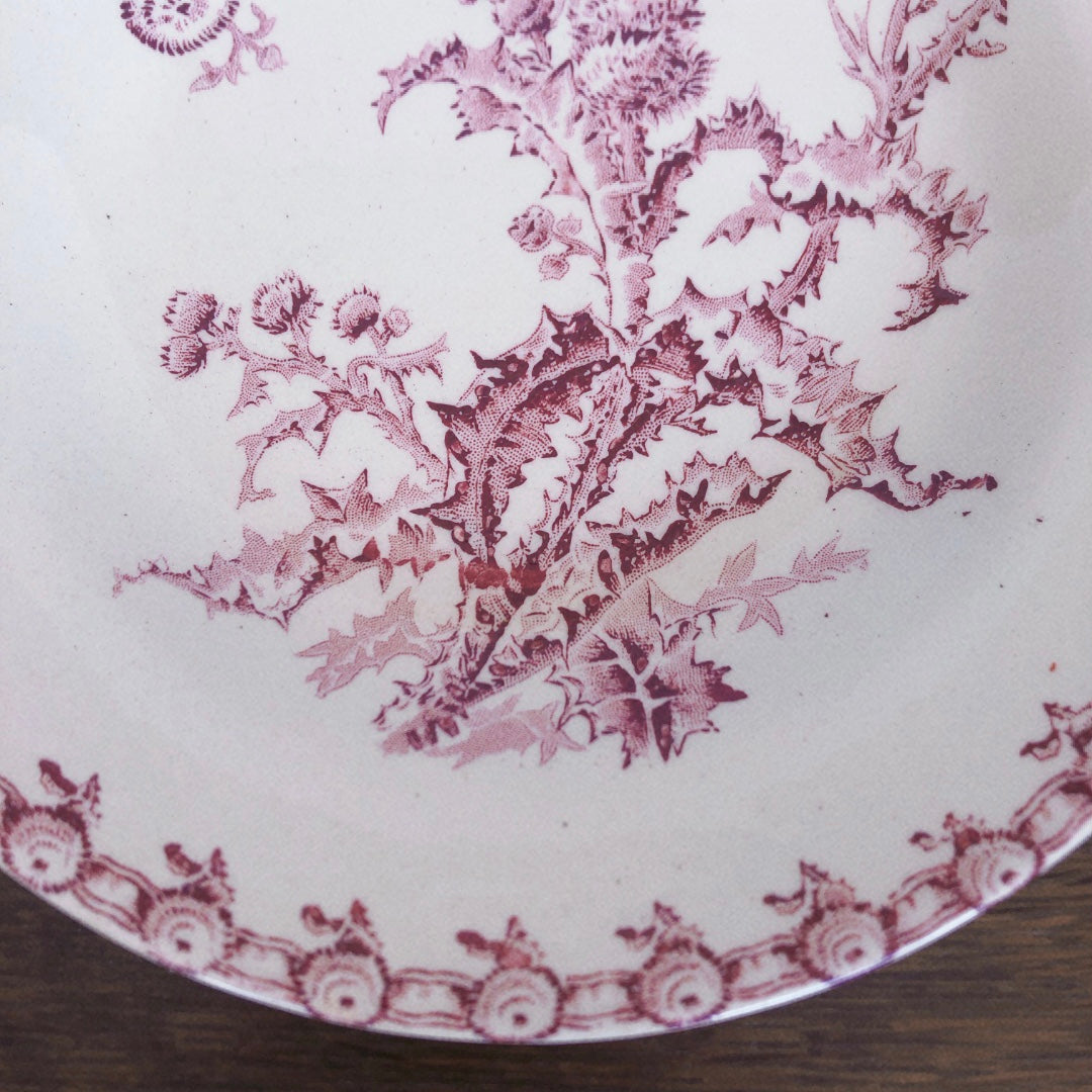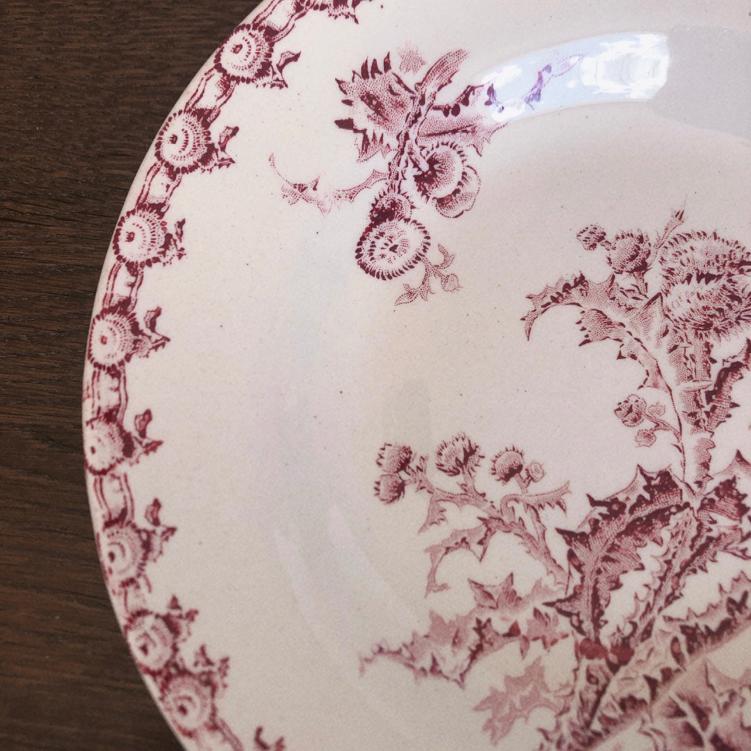 フランスアンティークプレート GIEN ジアン あざみ柄 スーププレート A レッド アンティーク食器・皿 ブロカント 蚤の市