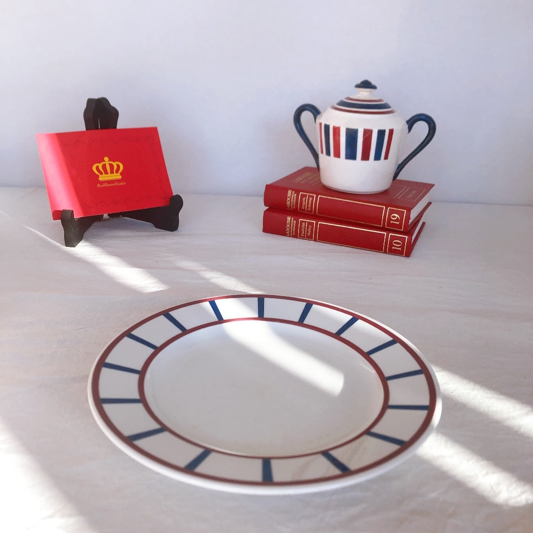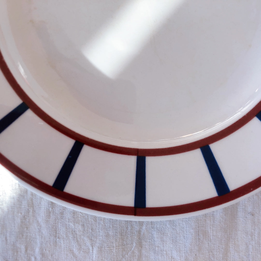 ディゴワンサルグミンヌ ピロブラン バスク柄プレート 『ボルドー・ネイビー』D フランスアンティーク食器 フランス蚤の市・ブロカント バスク柄食器