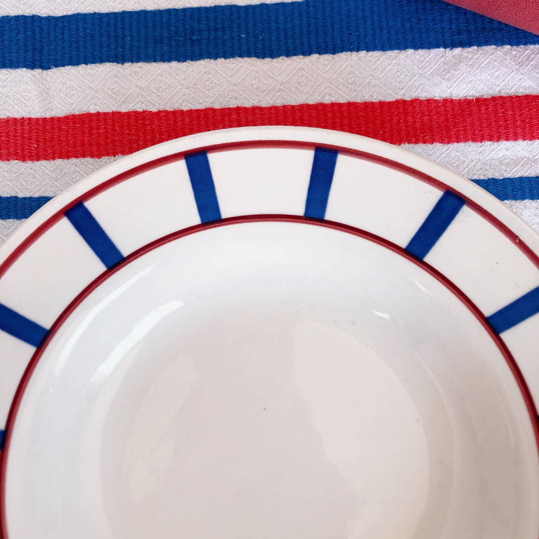 ディゴワンサルグミンヌ 『BASQUE』バスク柄 スーププレート 深皿 F ルージュ・マリンブルー フランスアンティーク食器 フランス蚤の市・ブロカント