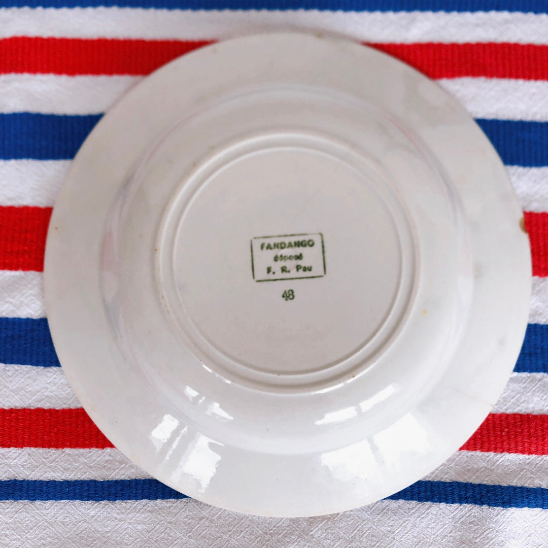 フランスアンティーク ディゴワンサルグミンヌ バスク柄『 FANDANGO 』シリーズのスーププレート、深皿です。