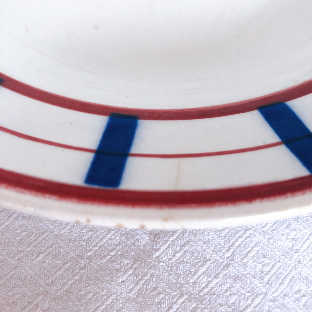 ディゴワンサルグミンヌ バスク柄 深皿/スーププレート FANDANGO『ルージュ・マリン』H フランスアンティーク食器 フランス 蚤の市