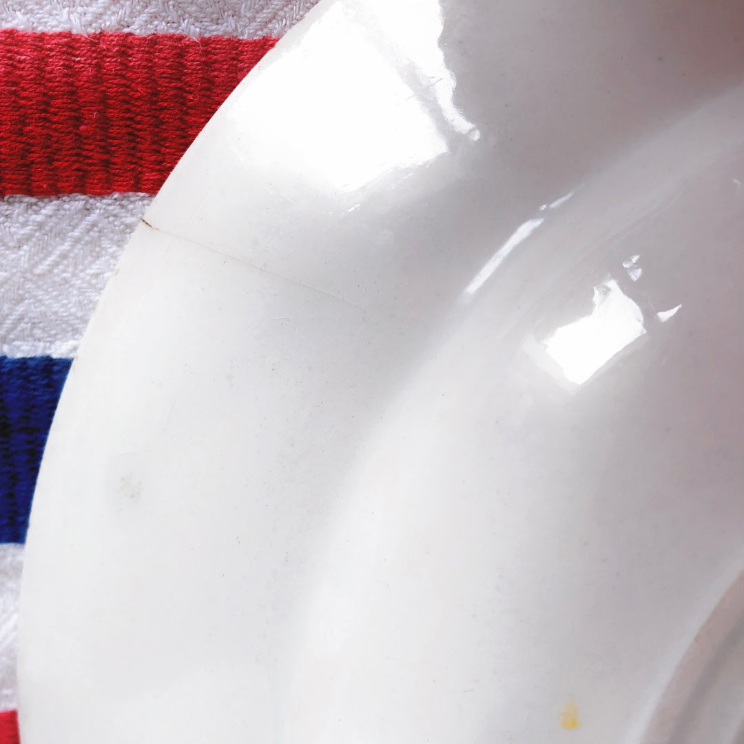 一か所製造時の凹凸、色剥げ、カトラリー傷、裏の縁にチップがみられます。