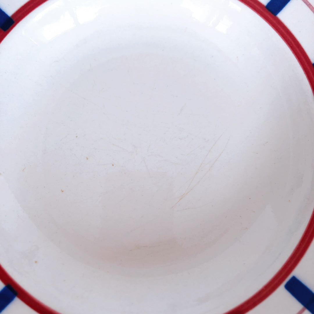 ディゴワンサルグミンヌ バスク柄 深皿/スーププレート FANDANGO『ルージュ・マリン』J フランスアンティーク食器 フランス 蚤の市