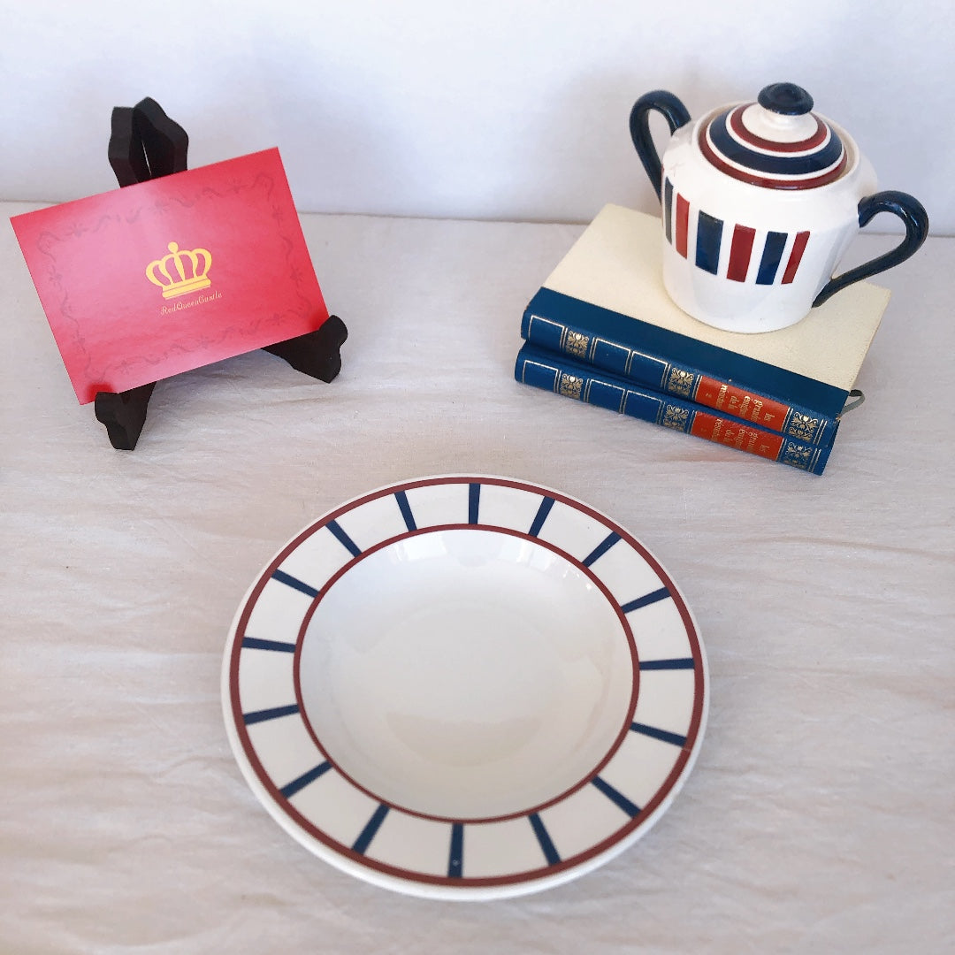 ディゴワンサルグミンヌ ピロブラン バスク柄 スーププレート 『ワインレッド・ネイビー』F フランスアンティーク食器 フランス蚤の市・ブロカント バスク柄食器