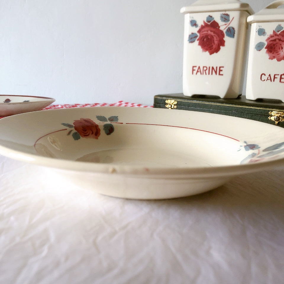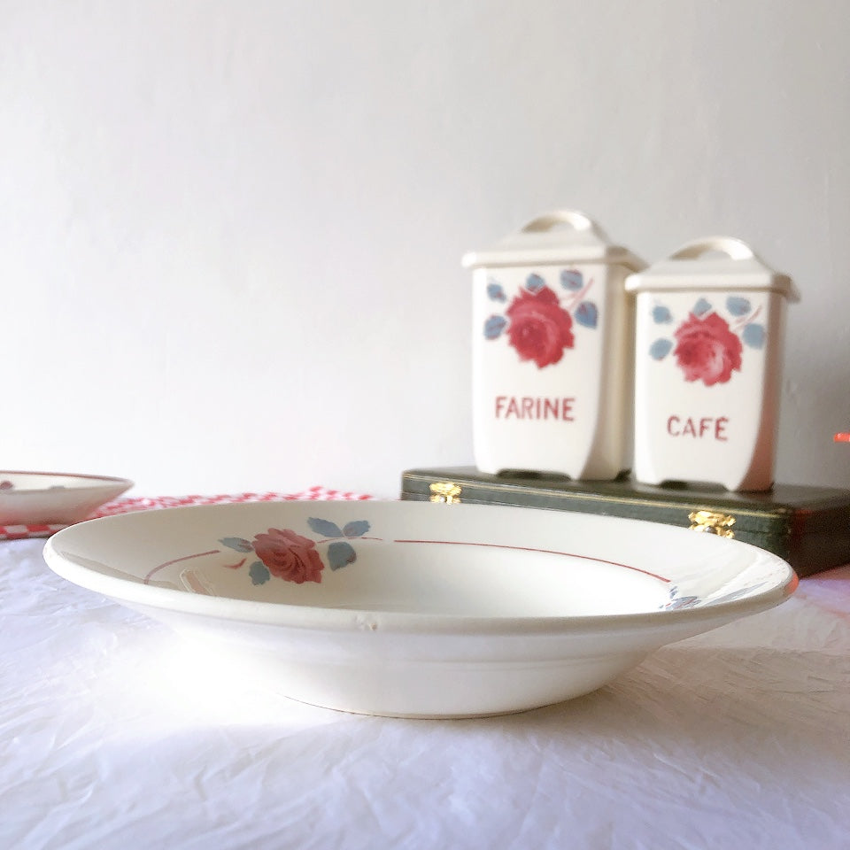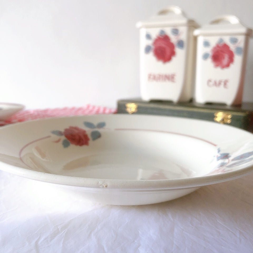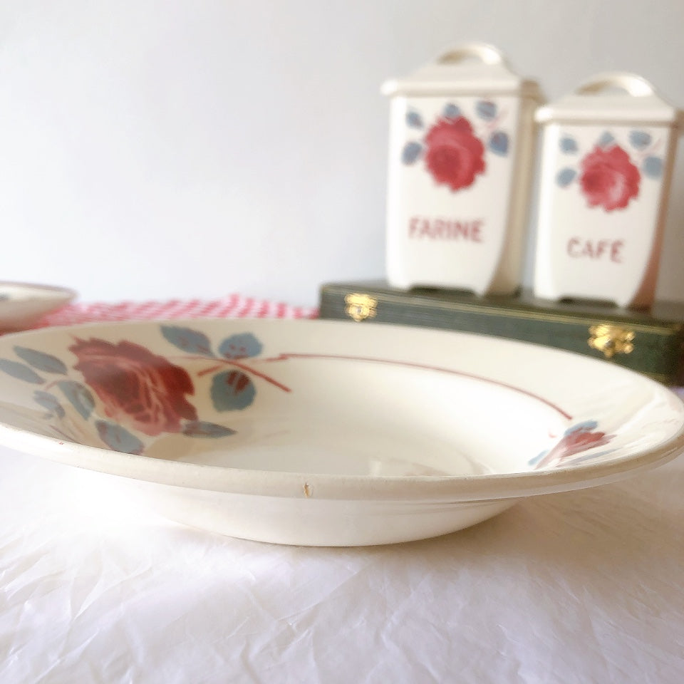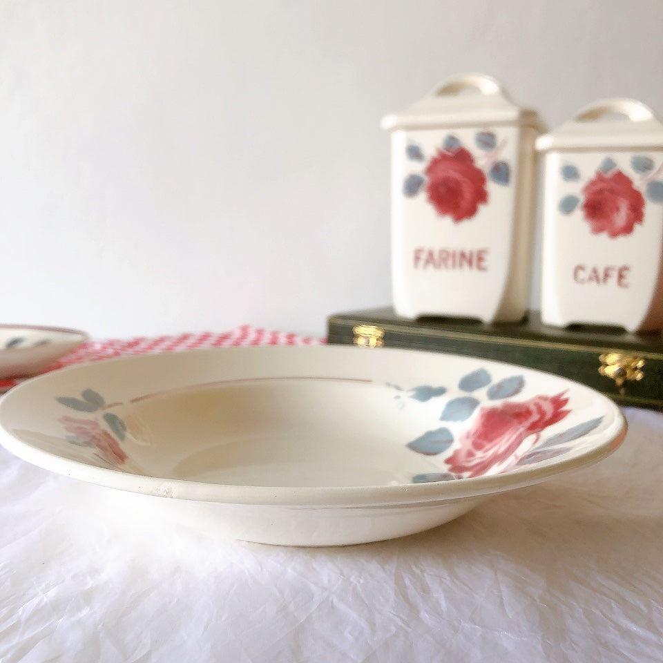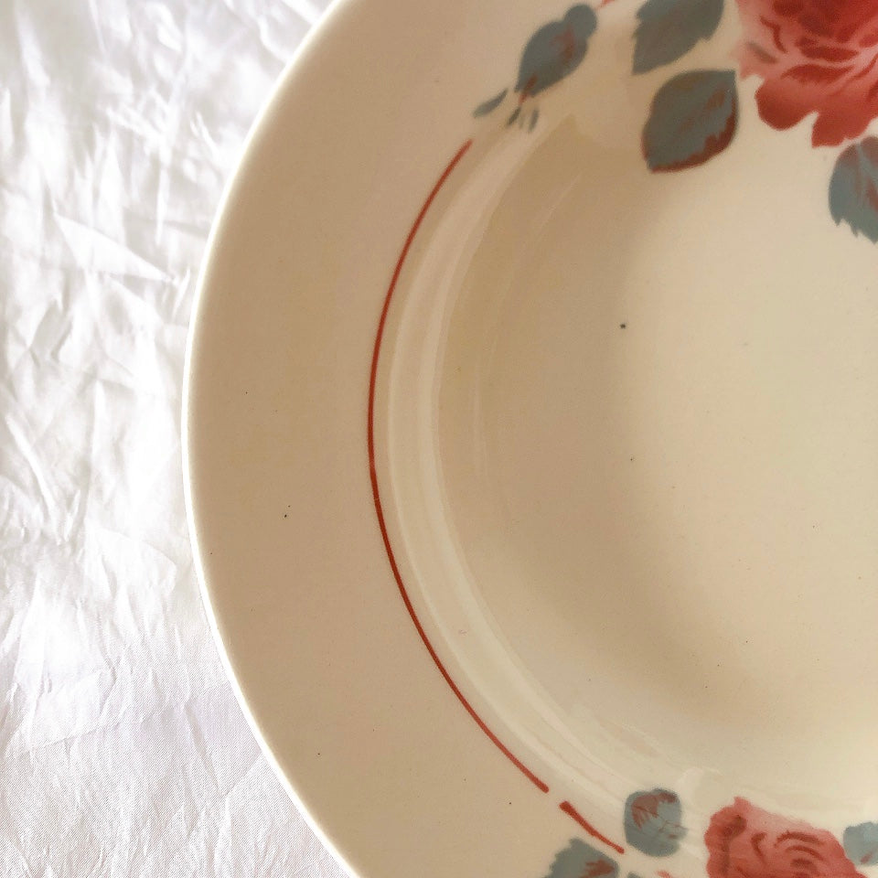 フランスアンティーク バドンヴィレー バラ柄スーププレート 深皿 フランスアンティーク食器 ブロカントアンティーク 蚤の市
