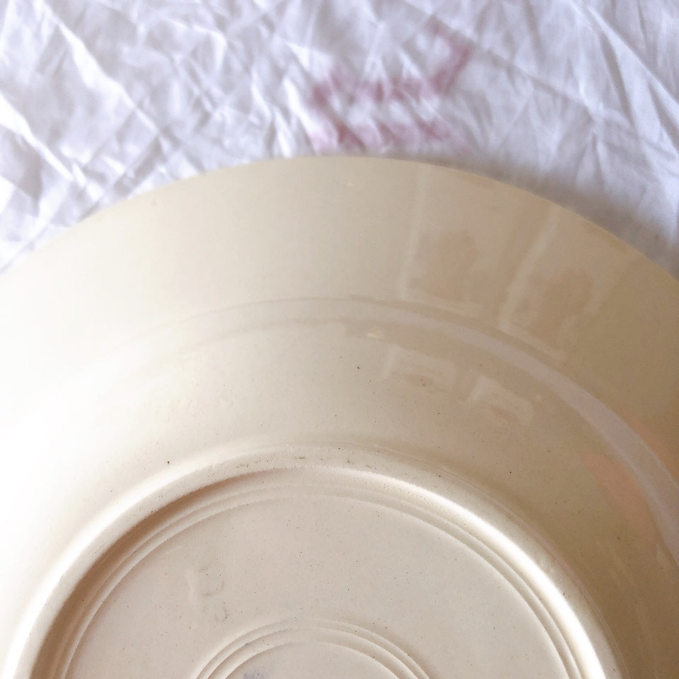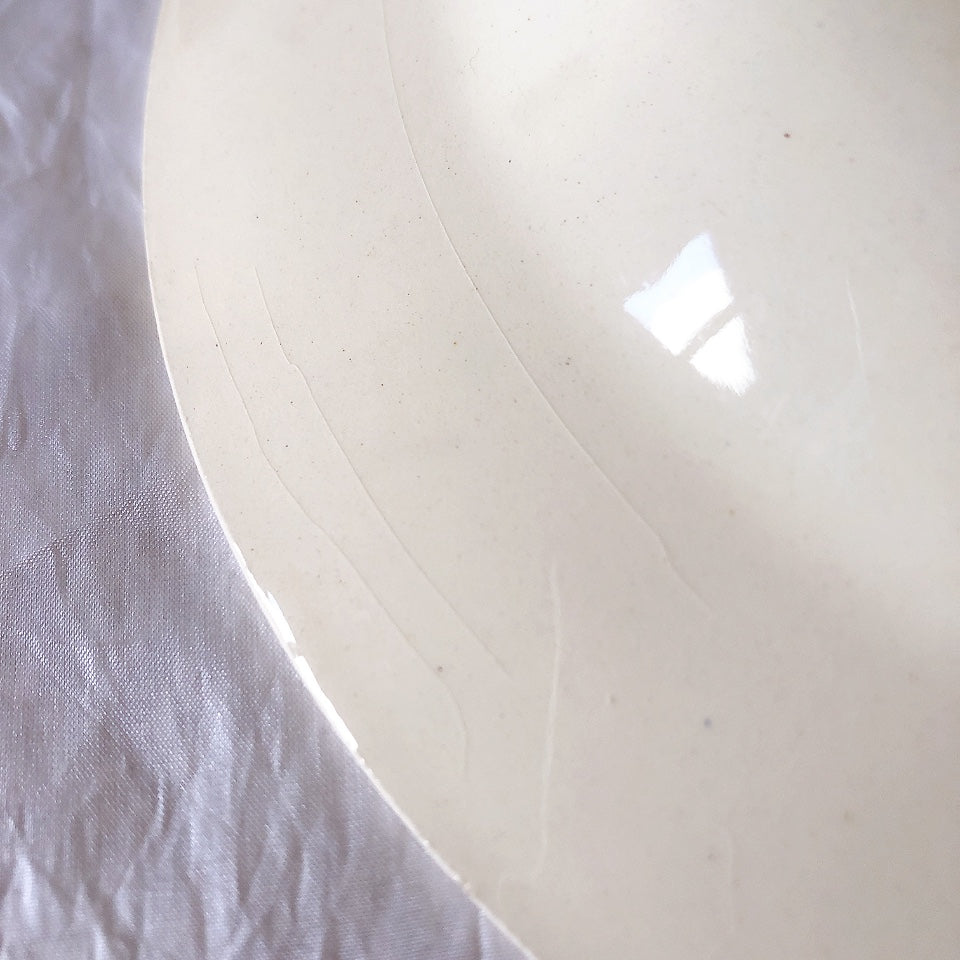 F: 写真81- 96 うっすらと若干のカトラリー傷、製造時の凹凸がみられますが上から釉薬で仕上げられています。ほぼ使用感なし。