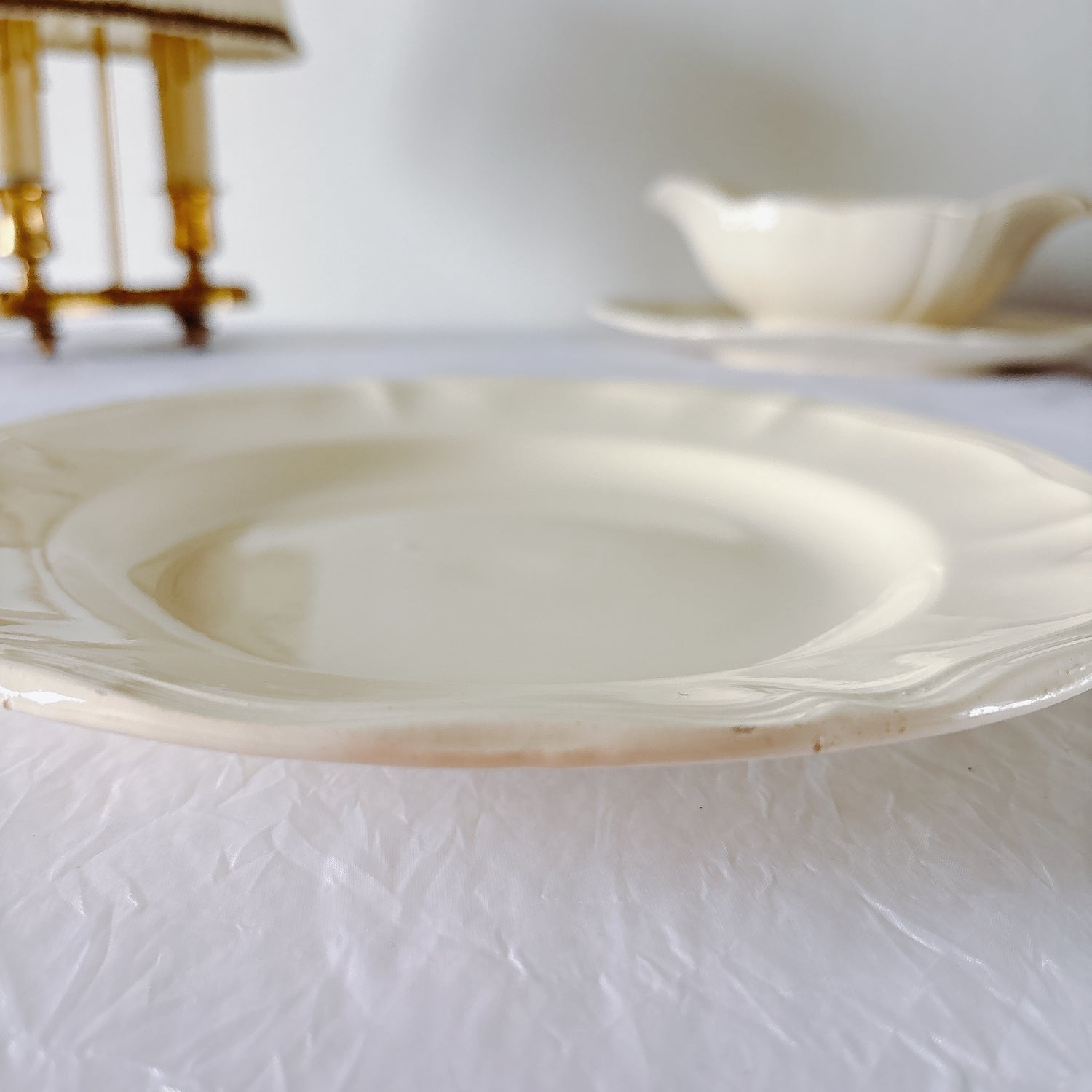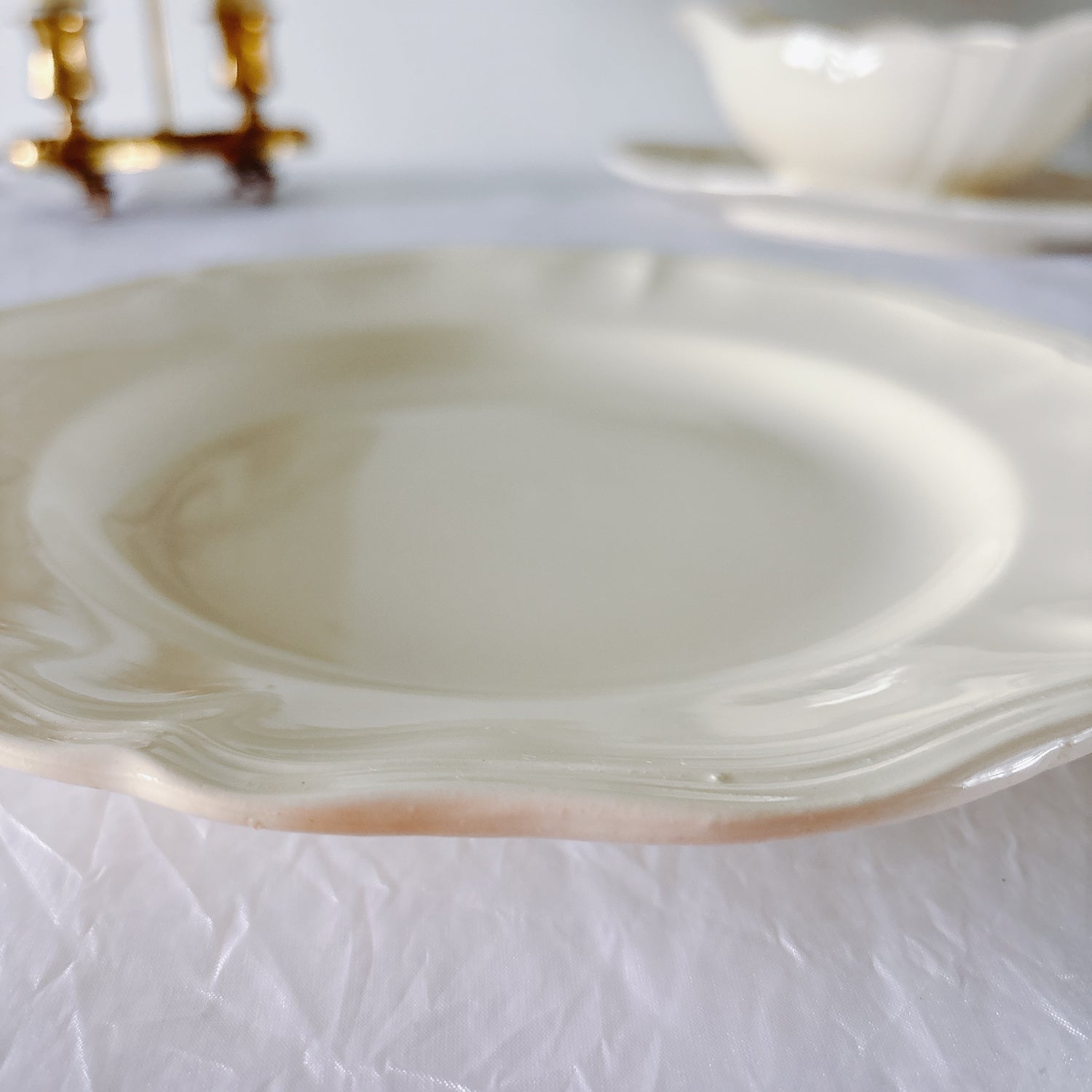 D 写真49-63:2ヵ所縁にチップ(釉薬の剥がれ)、若干のカトラリー傷がみられますが、全体的に綺麗な状態です。さほど使用感はございません。