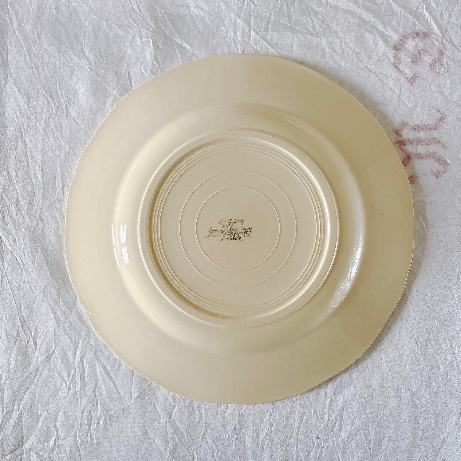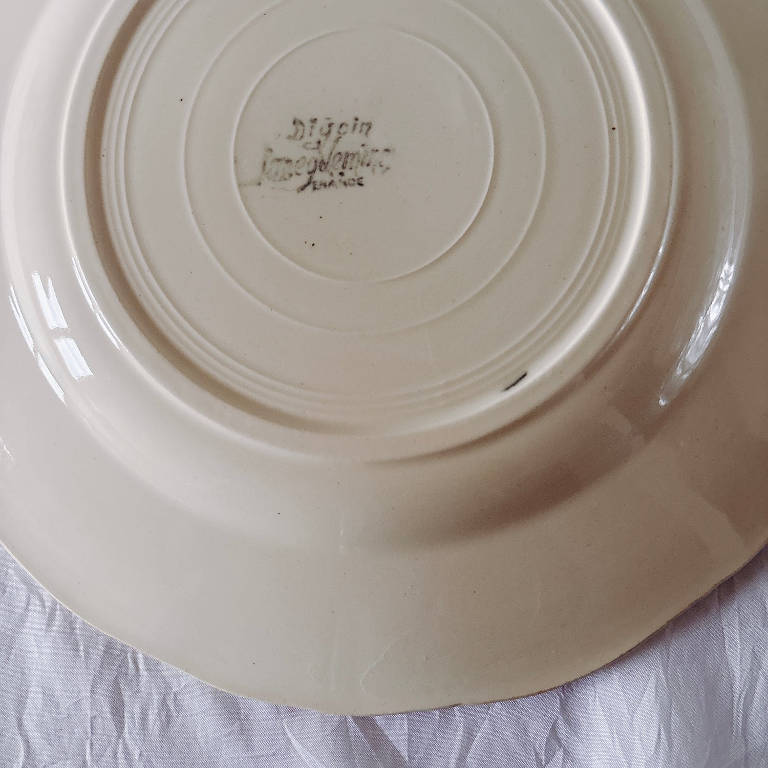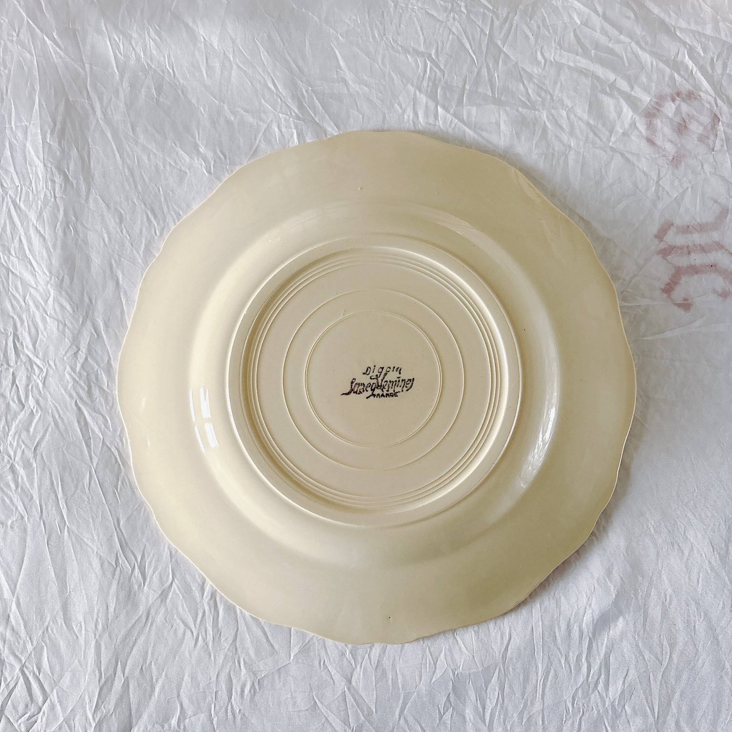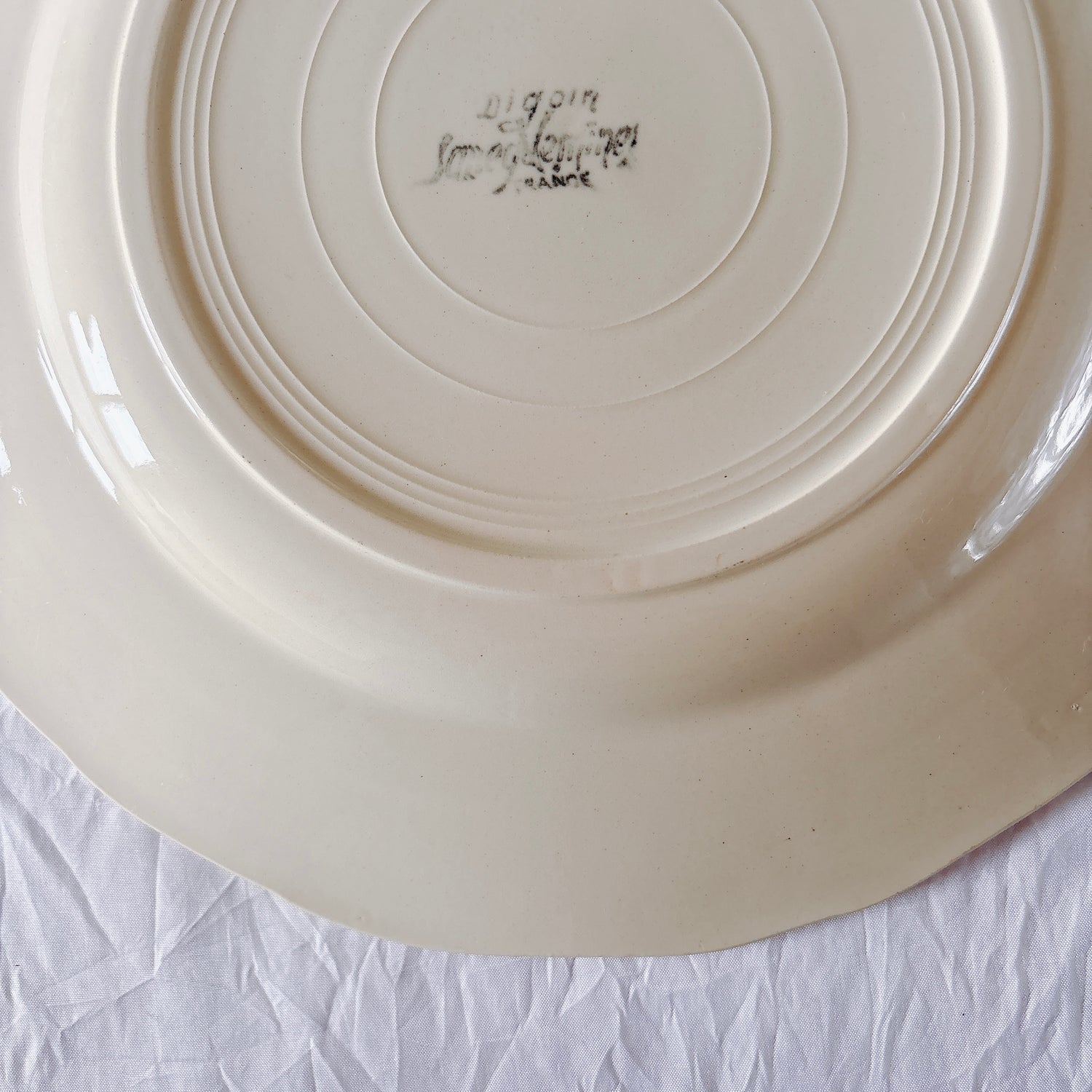 A 写真1-16:中央に製造時の凹凸が一か所、カトラリー傷がみられますが、チップもラインもなく全体的に綺麗な状態です。裏側縁の釉薬のあがれあり。