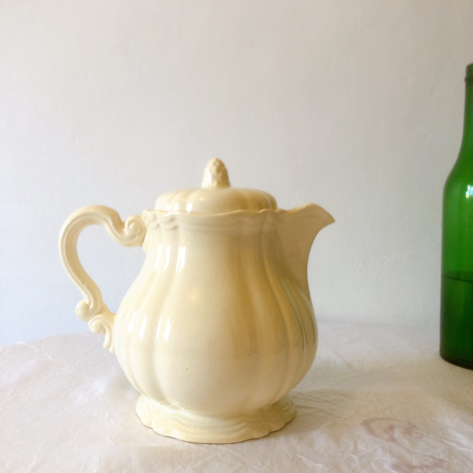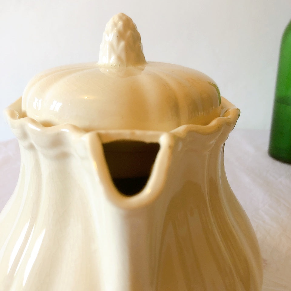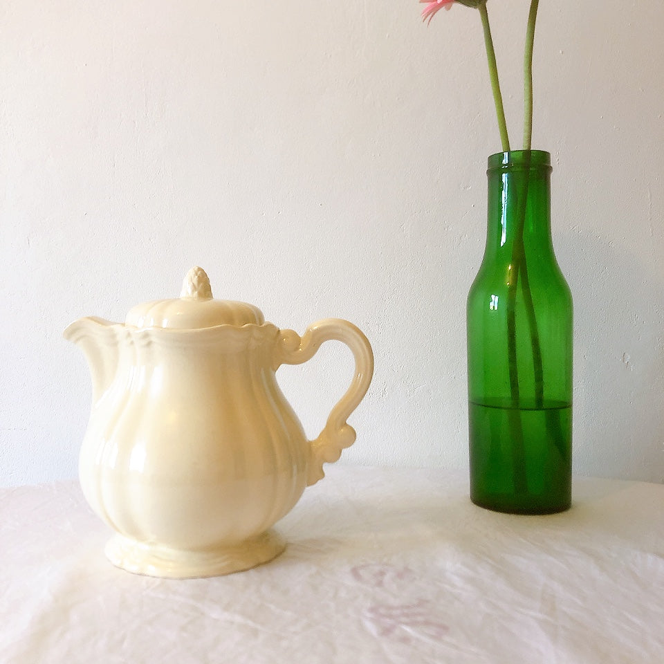 ディゴワンサルグミンヌ Digoin&sarreguemines 花リム ティー/コーヒーポット フランスアンティーク食器 フランス蚤の市・ブロカント