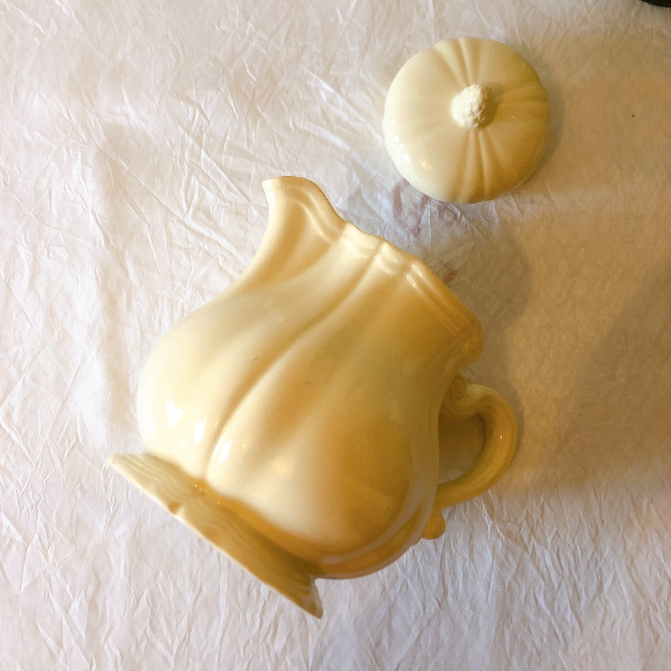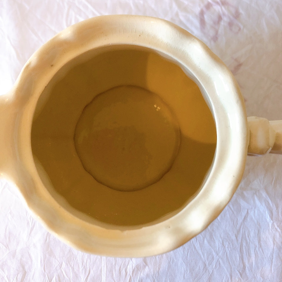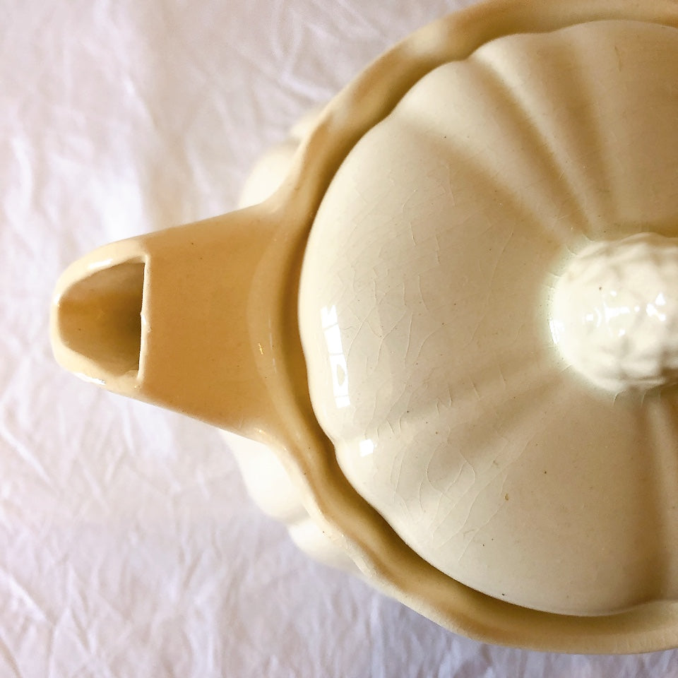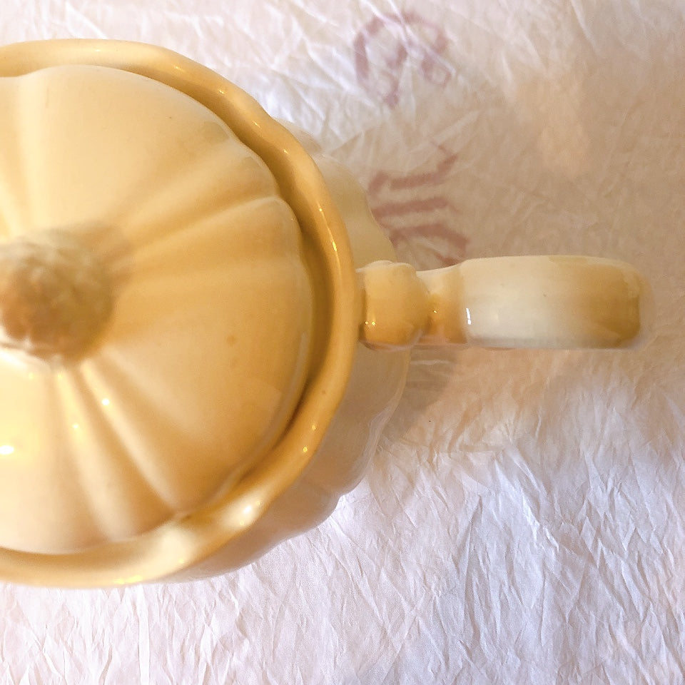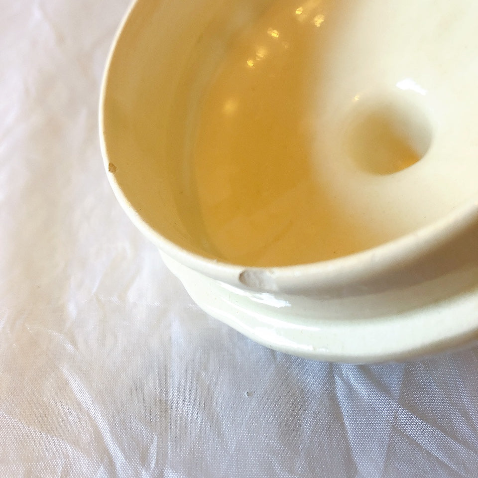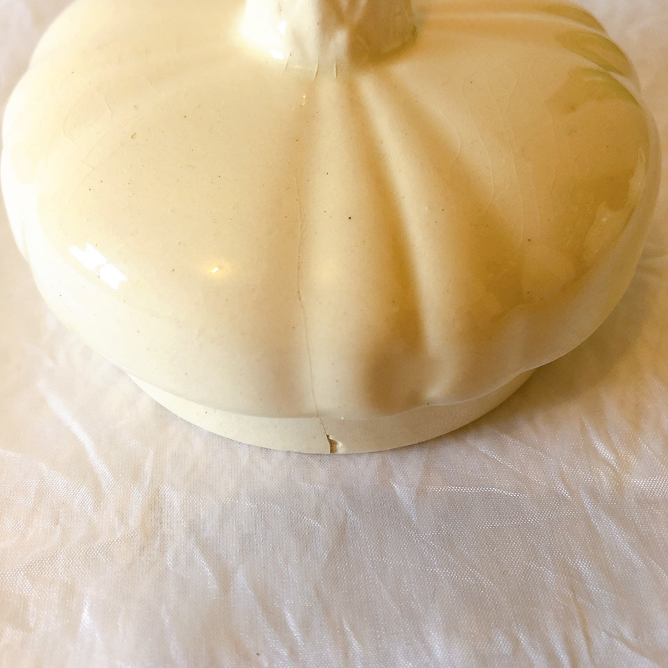 アンティーク品としては良好なコンディションです。側面に薄っすらと貫入、内側上部のヘリに欠け、蓋にチップとラインがありますが、使用には差し支えございません。また蓋をしている状態ではほぼ見えません。それ以外は全体的に綺麗な状態です。