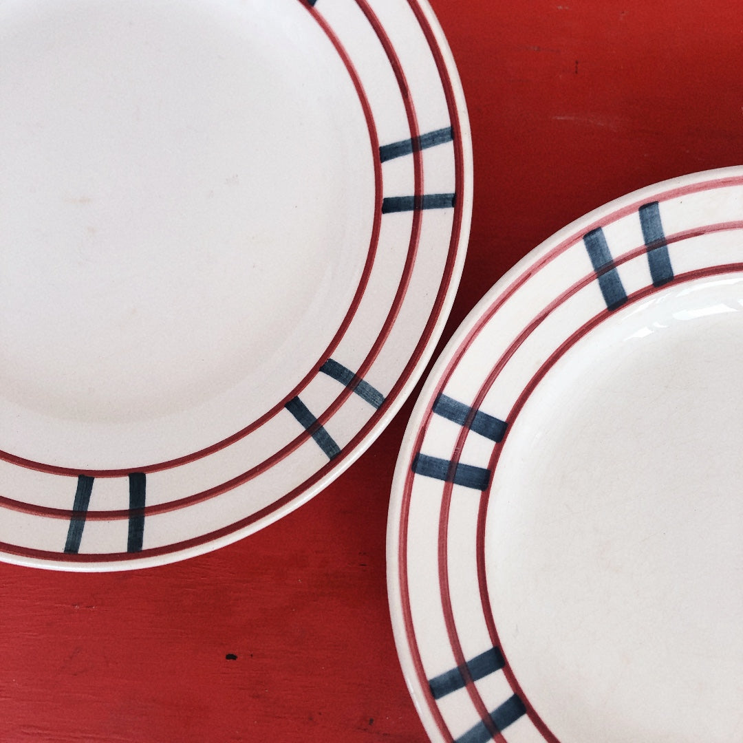 ご予約バスク柄食器セット ジアン Gien 『BAYONNE』ディナープレート バスク柄 レッド✕ブルー A フランスアンティーク・食器・皿・プレート ブロカント