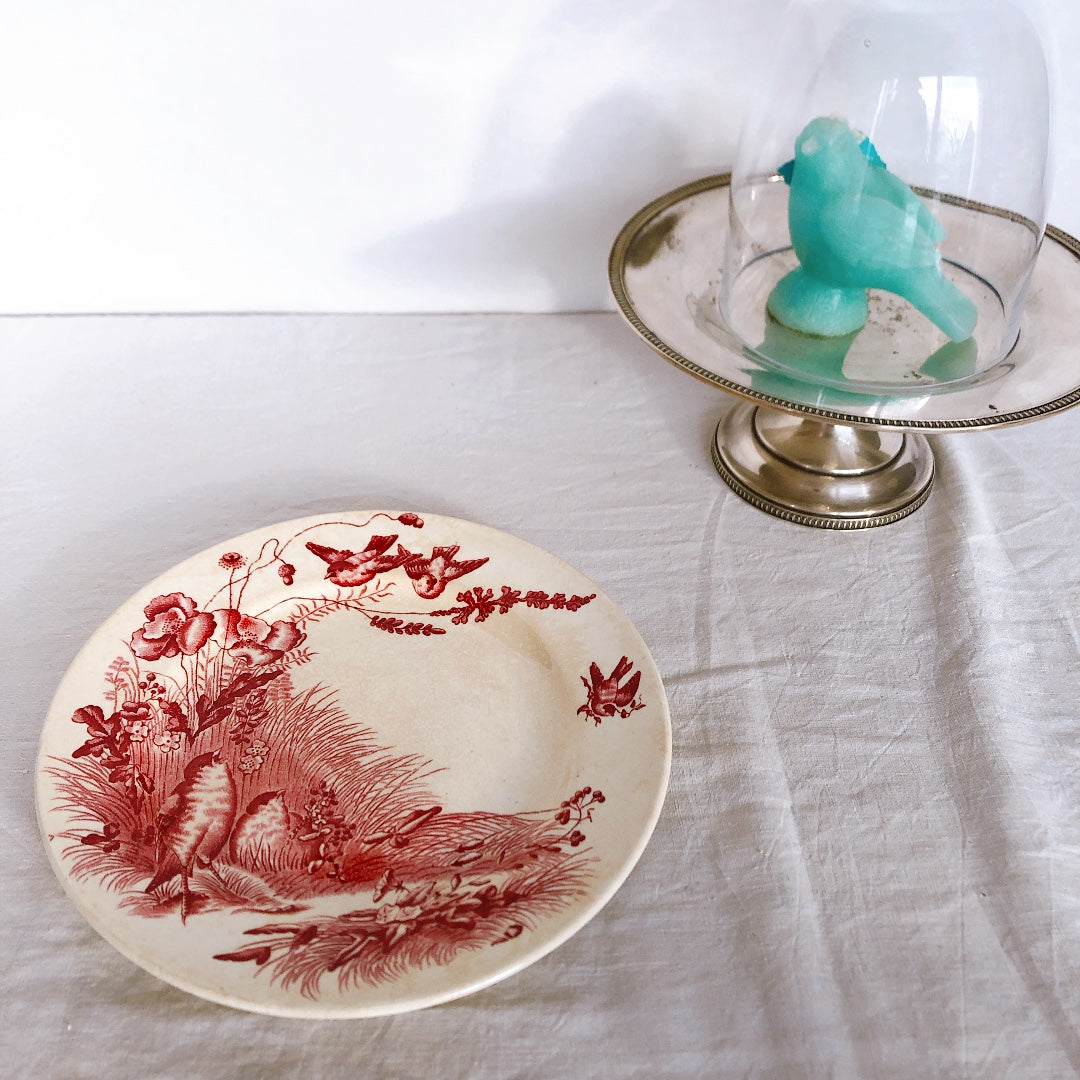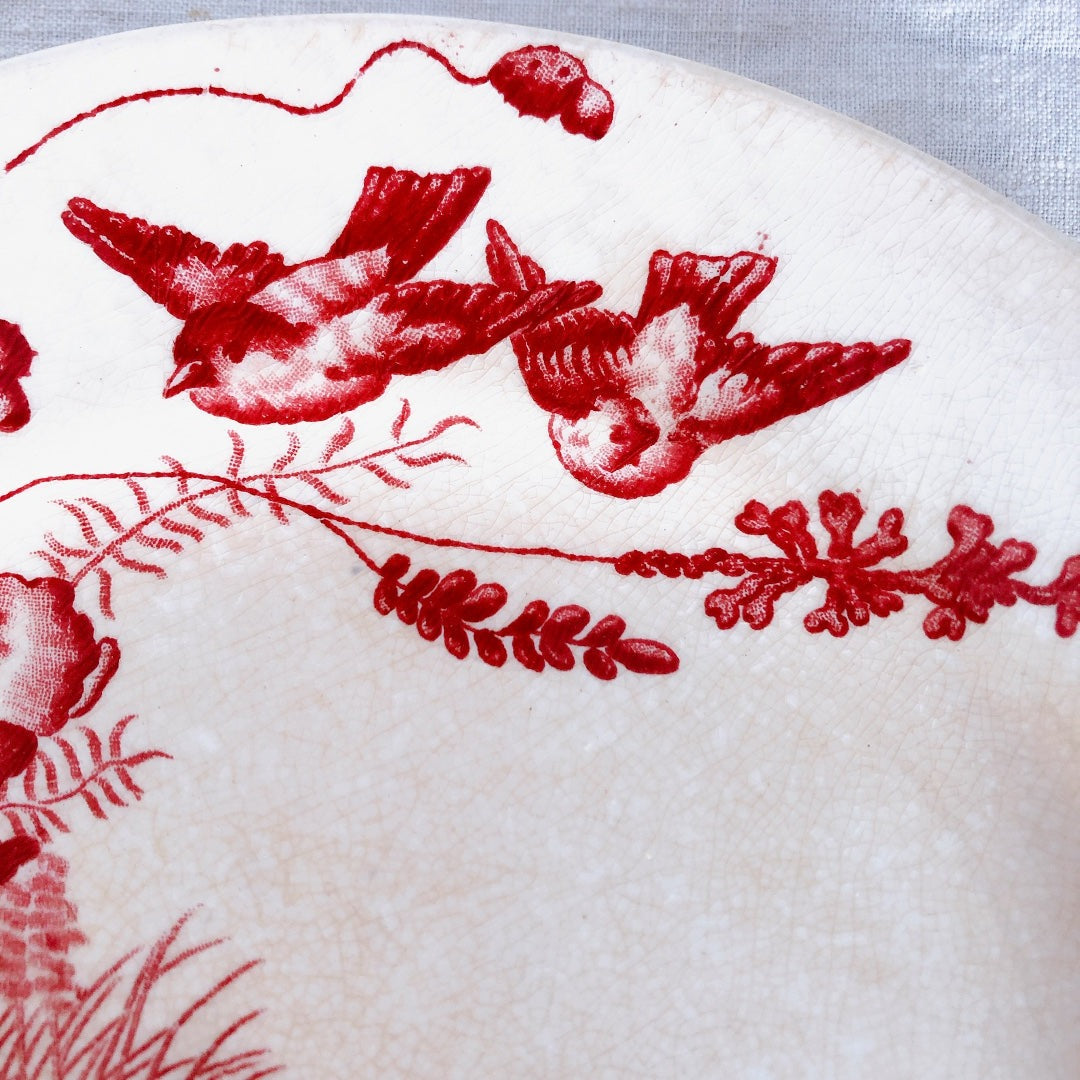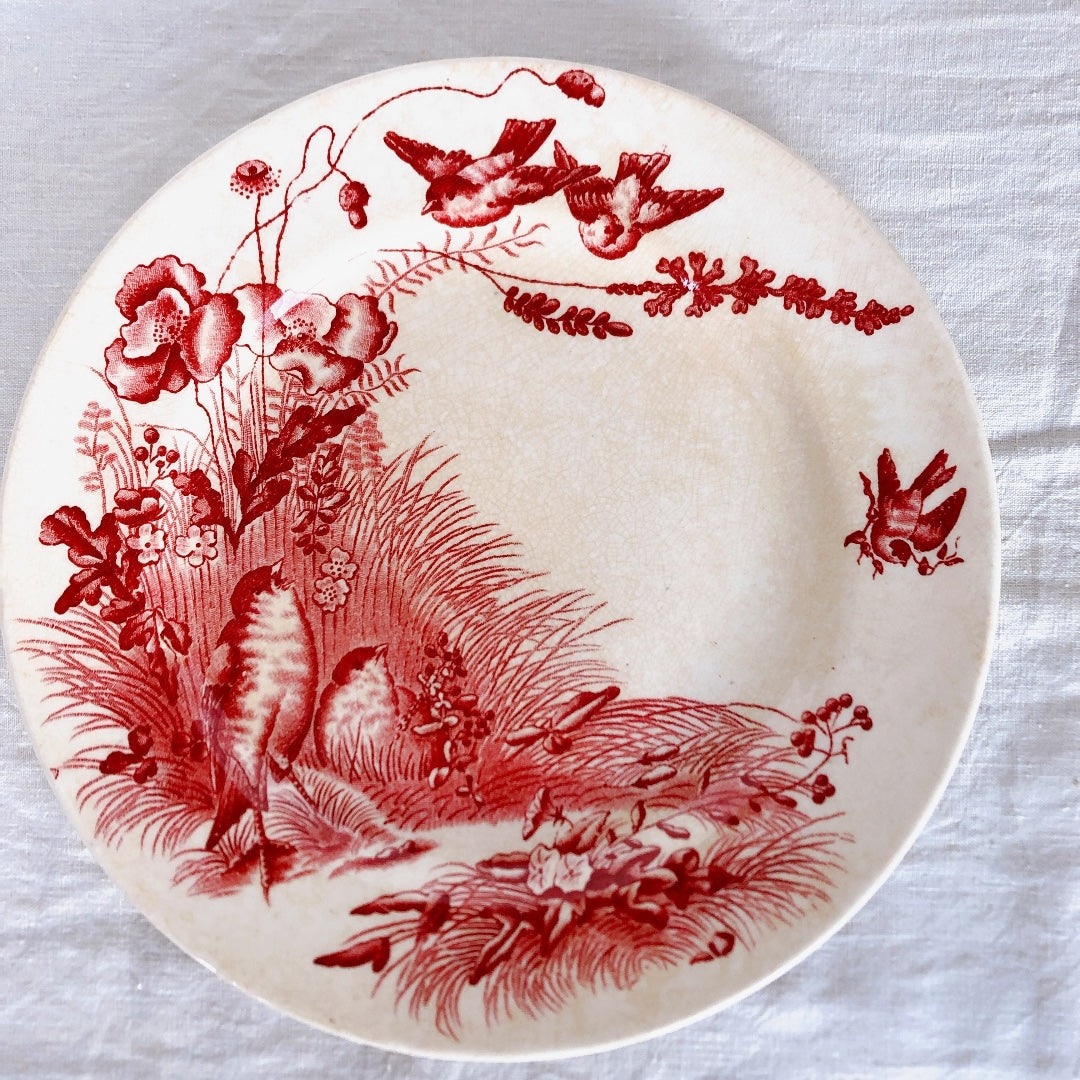 フランス ヴィエイヤーボルドー 『OISEAUX』 赤 ディナープレート B フランスブロカント・蚤の市