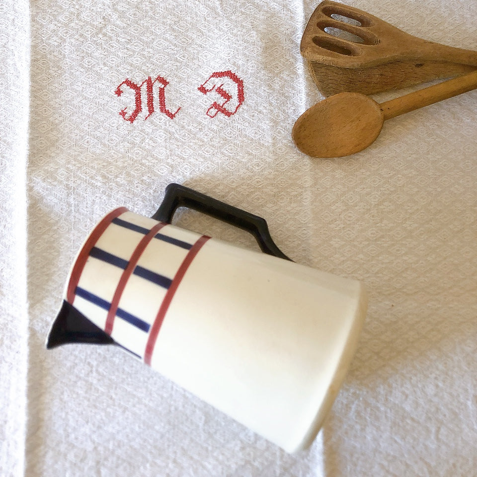 クレイユエモントロー HBCM べアン バスク柄 ピシェ 1200ML「ルージュ・マリン」フランスアンティーク食器 ブロカント