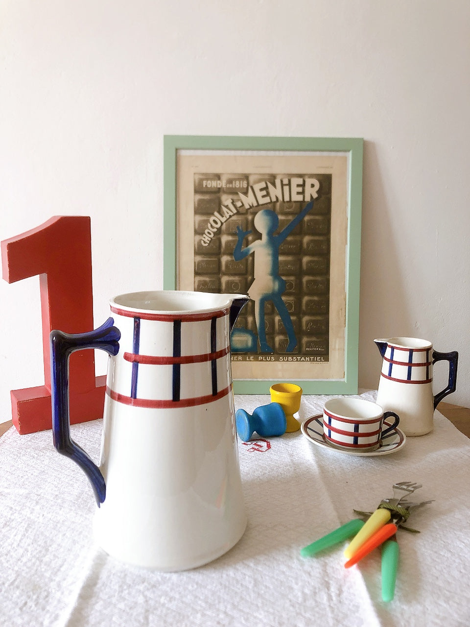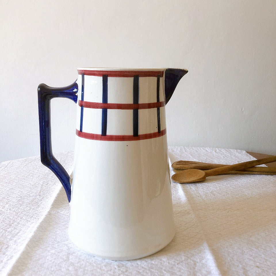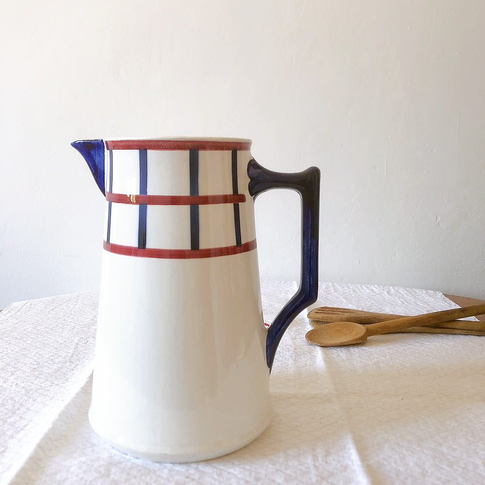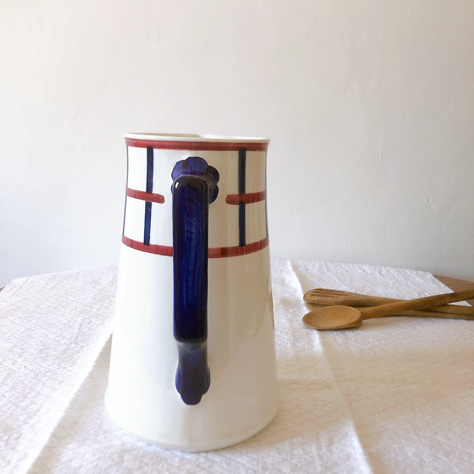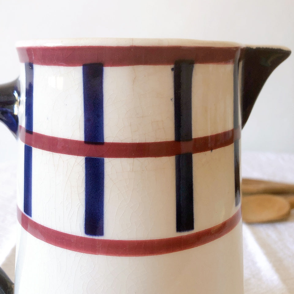 HBCM(Hippolyte Boulenger-Creil-Montereauクレイユ&モントロー)窯製 Béarn モデルのバスク柄 ピシェ(ピッチャー)です。赤x青。