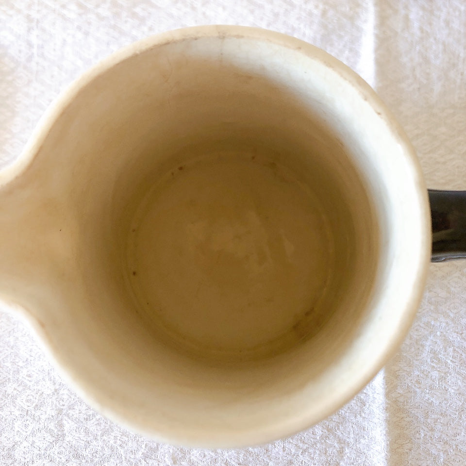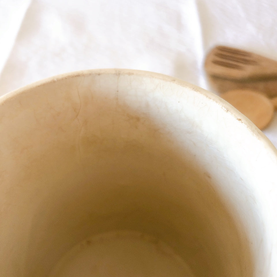 アンティーク品としては良好なコンディションです。縁上部に薄っすらと短いライン上部特に内側にステイン、細かい貫入がみられますが全体的に綺麗な状態です。