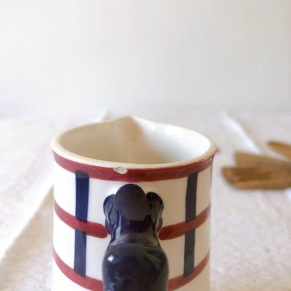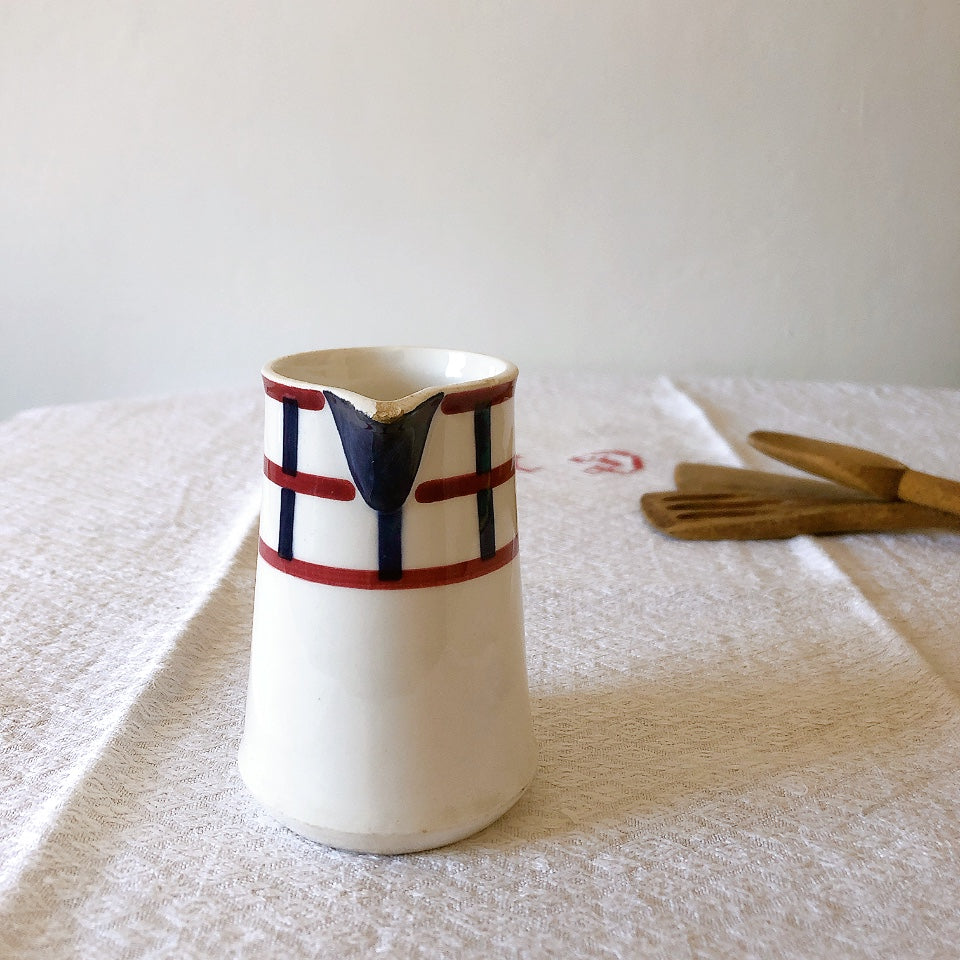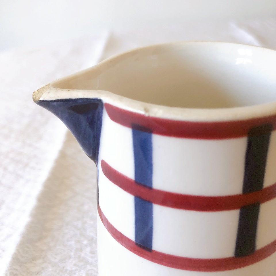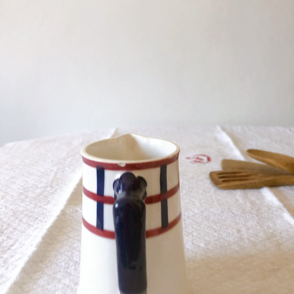 クレイユエモントロー HBCM べアン バスク柄 ピシェ ミルクポット 220ML「ルージュ・マリン」フランスアンティーク食器 ブロカント