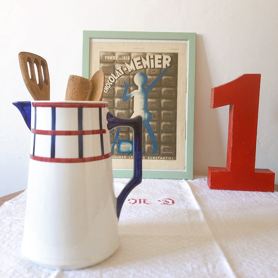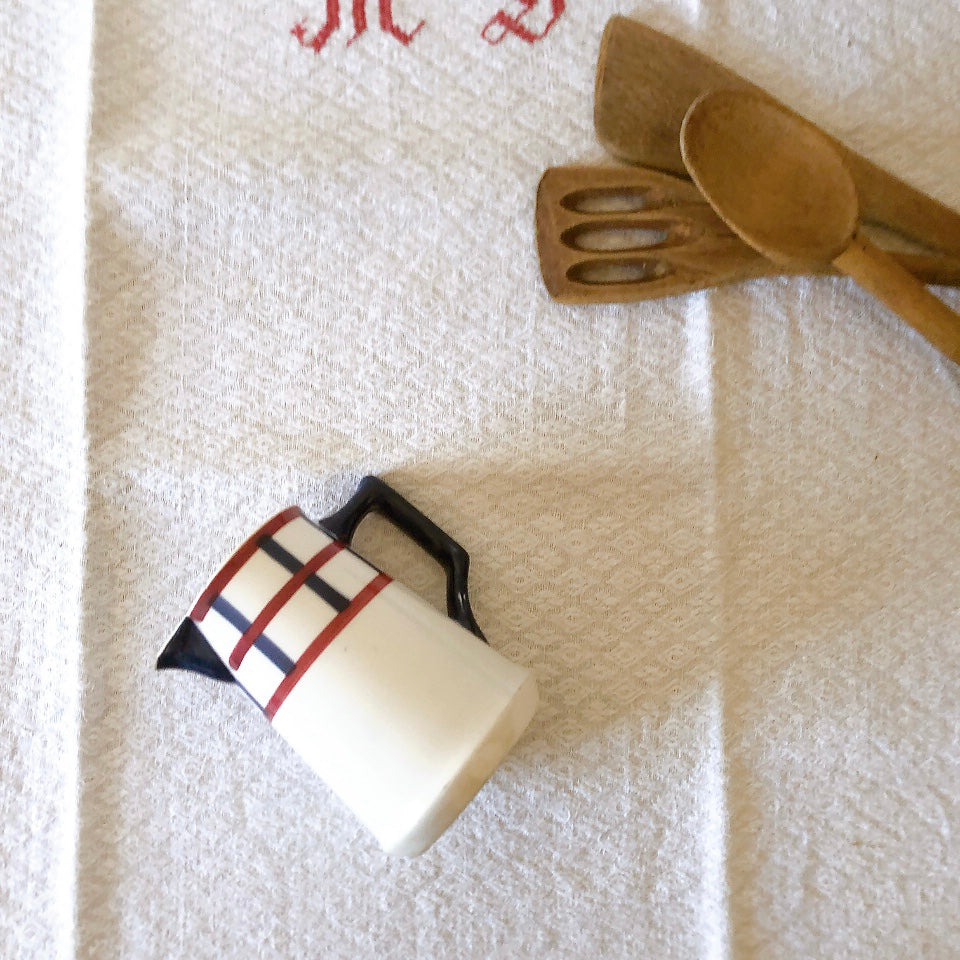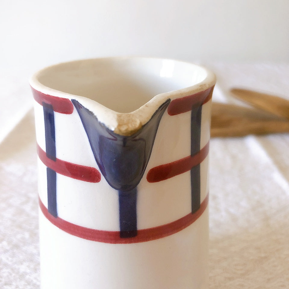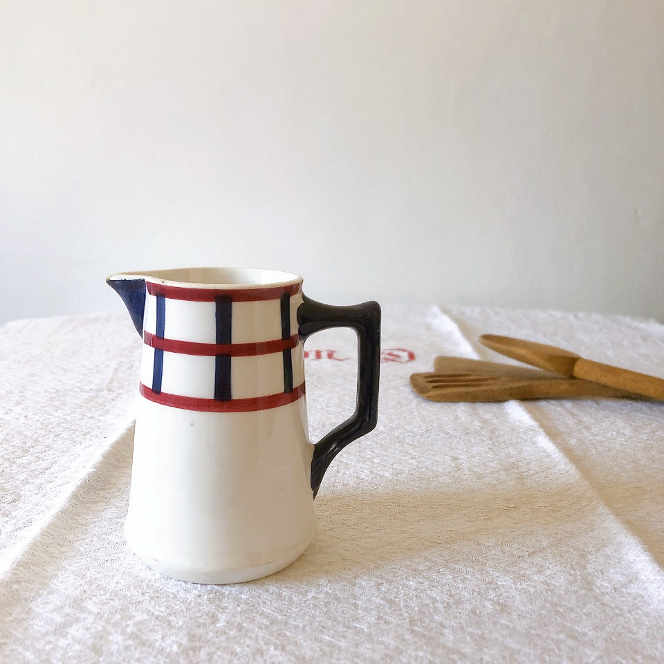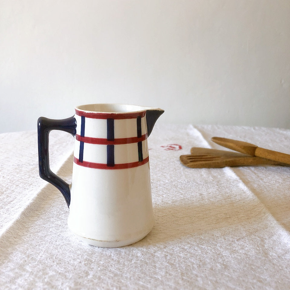 クレイユエモントロー HBCM べアン バスク柄 ピシェ ミルクポット 220ML「ルージュ・マリン」フランスアンティーク食器 ブロカント
