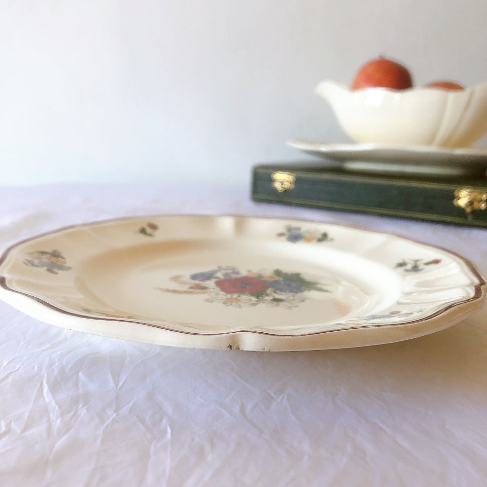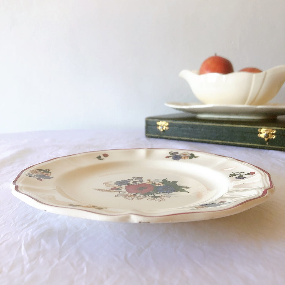 フランスアンティーク、ディゴワンサルグミンヌ『アグレスト』シリーズ、花リム、花柄のプレート 、平皿。