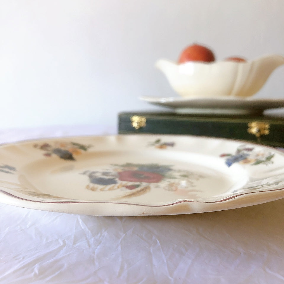 フランスアンティーク、ディゴワンサルグミンヌ『アグレスト』シリーズ、花リム、花柄のプレート 、平皿。