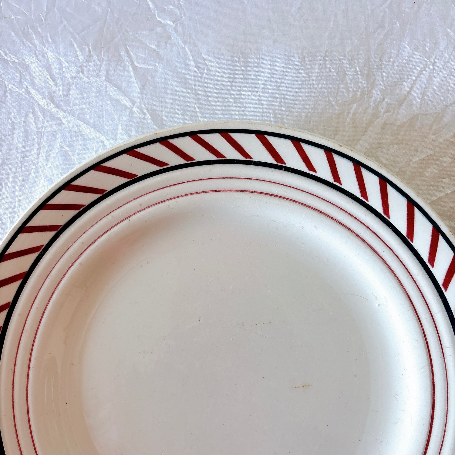 アンティーク品としては良好なコンディションです。中央に傷、シミがございます。ラインの色が一部薄くなっています。