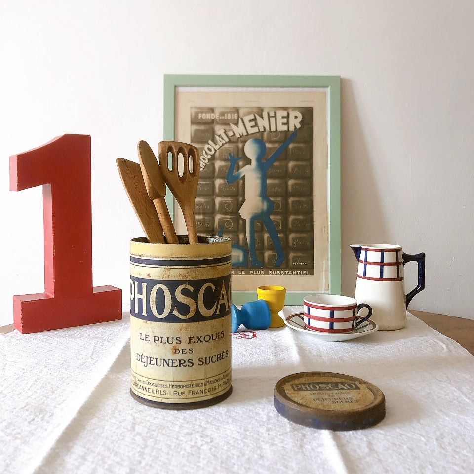 フランス、ARDANNE & FILS アルダンヌ&フィス社のレトロなココア飲料「Phoscao」(フォスカオ)のパッケージで、非常にコレクターズアイテム的価値の高いヴィンテージ缶、ティン缶です。