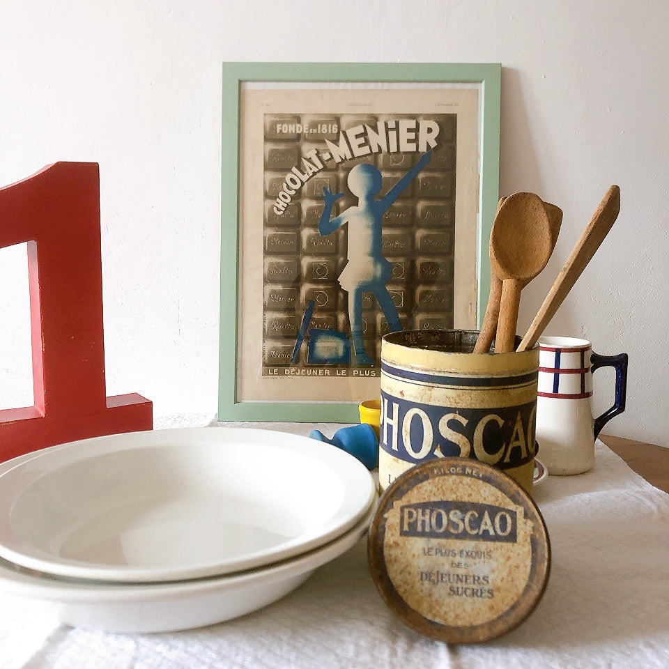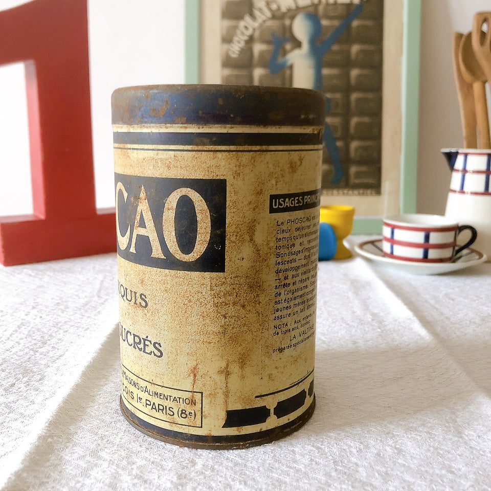 フランスアンティーク PHOSCAO フォスカオ TIN缶 "CHOCOLAT AU LAIT EN POUDRE(ココア)" フランスアンティーク・ヴィンテージ雑貨 ブロカント・蚤の市