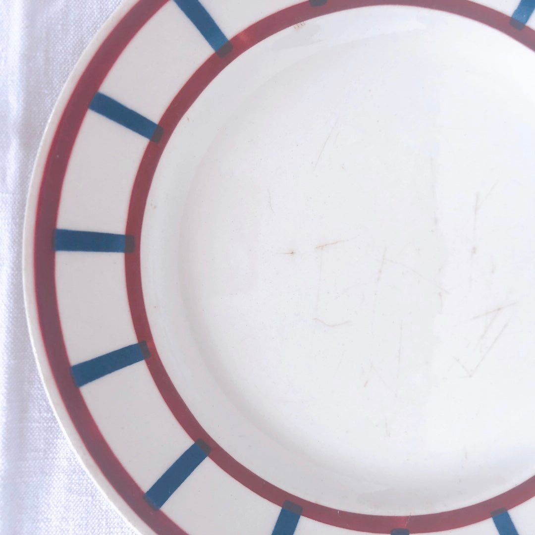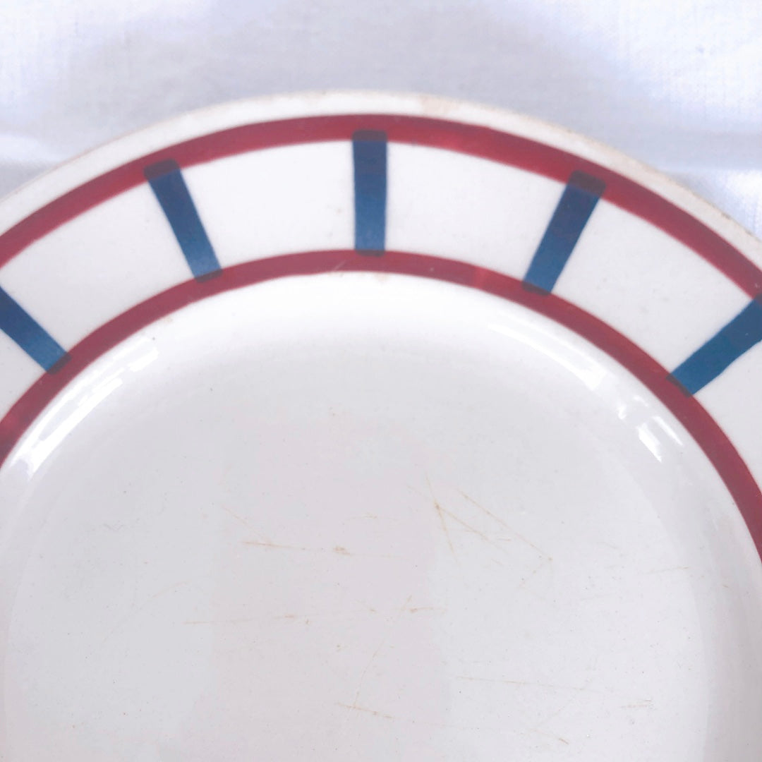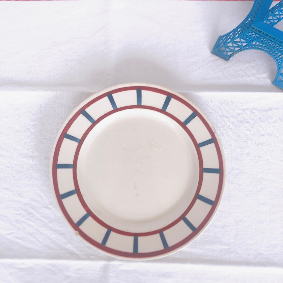 バドンヴィレー デザートプレート/平皿 バスク柄『レッド・ブルー』C フランスアンティーク食器 フランス蚤の市 ブロカント