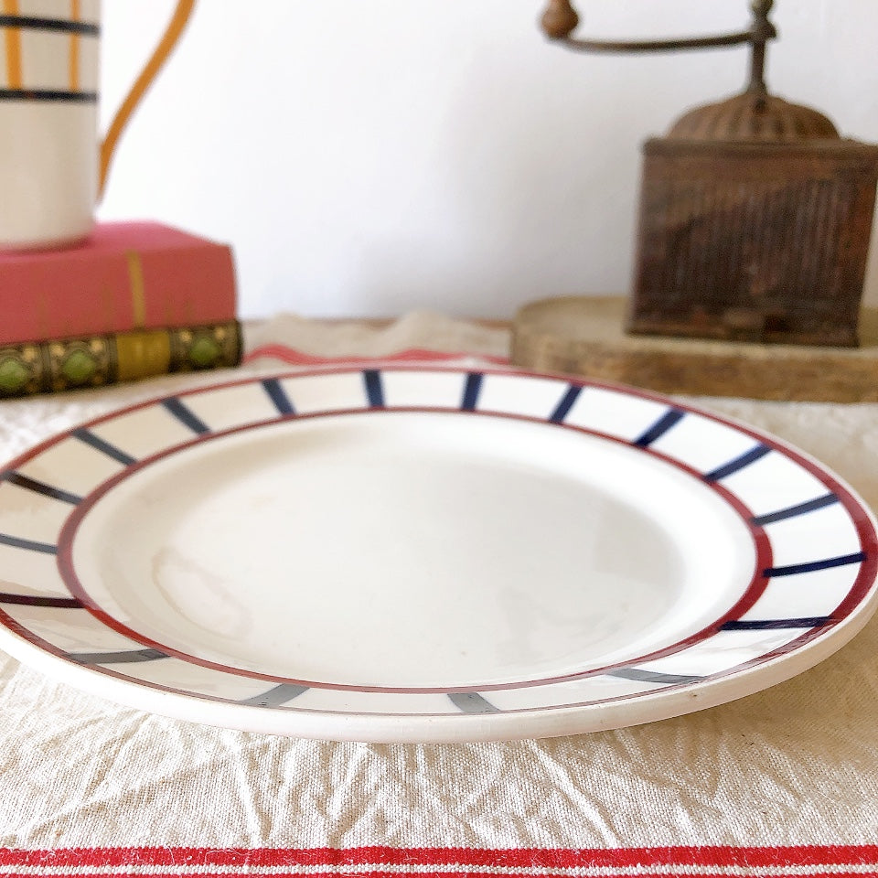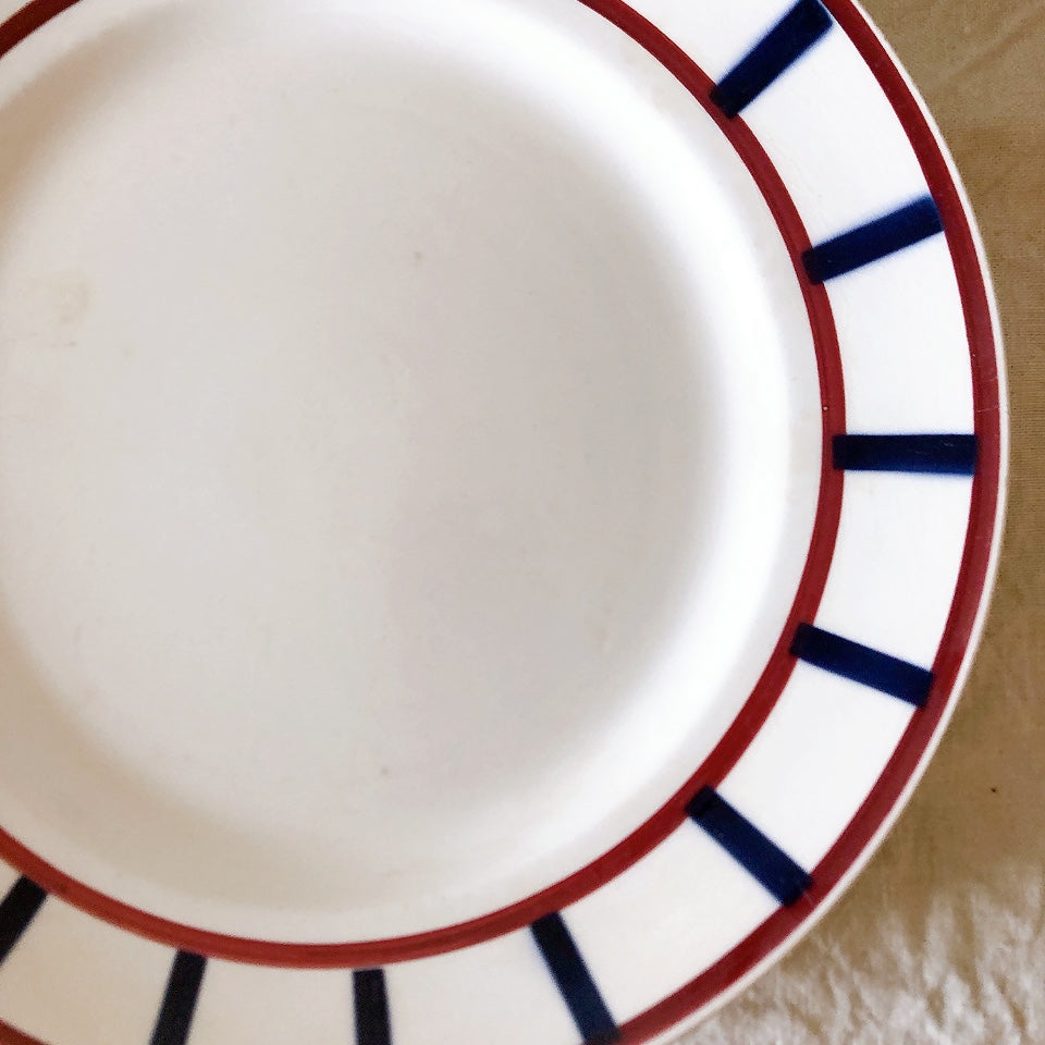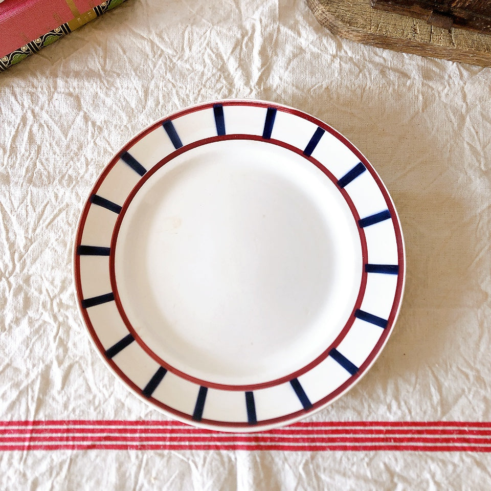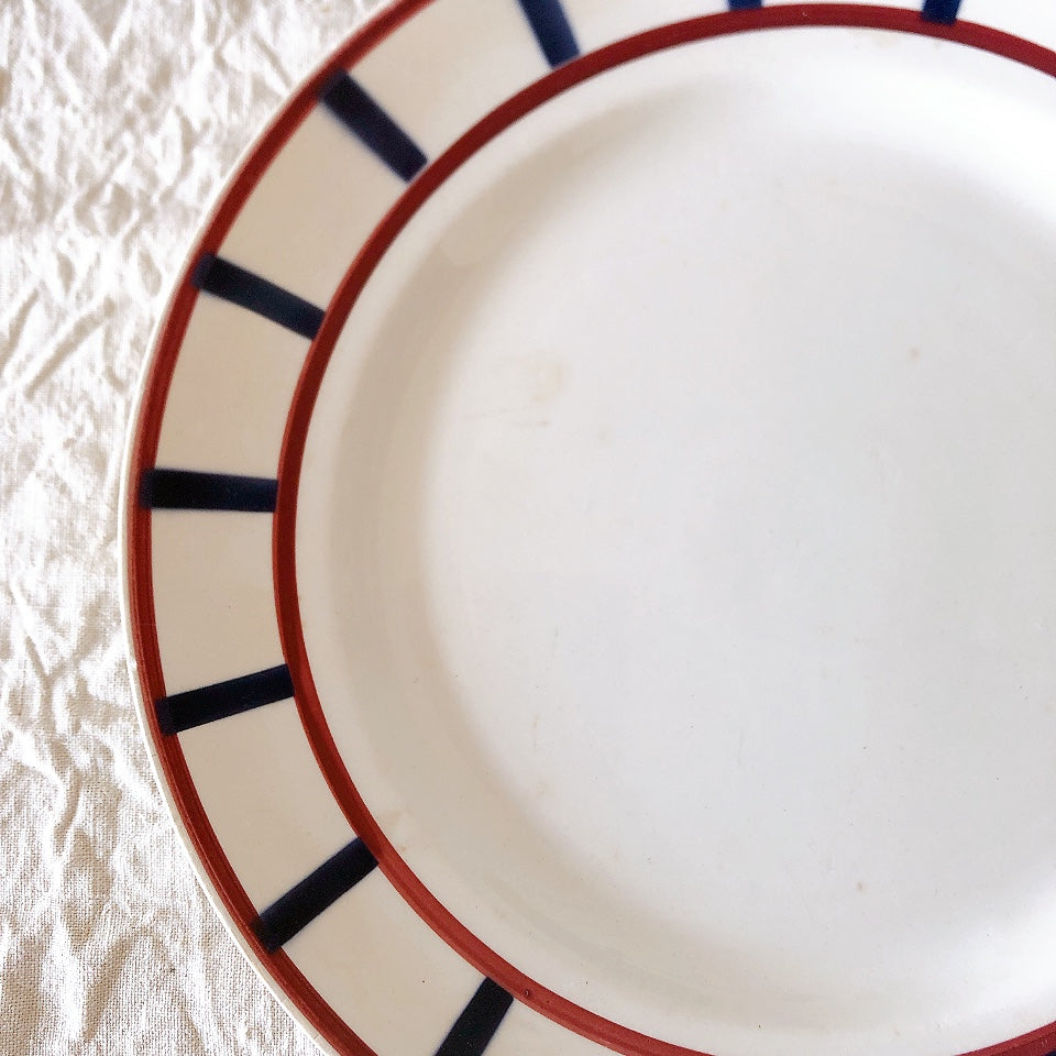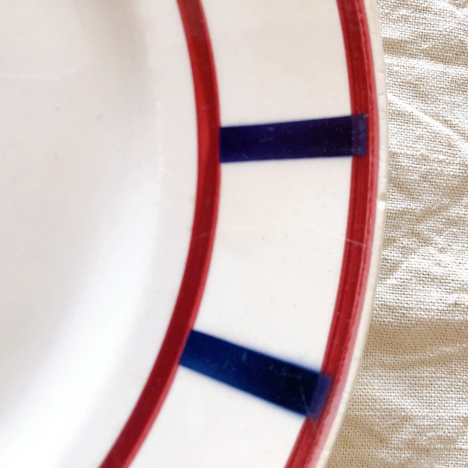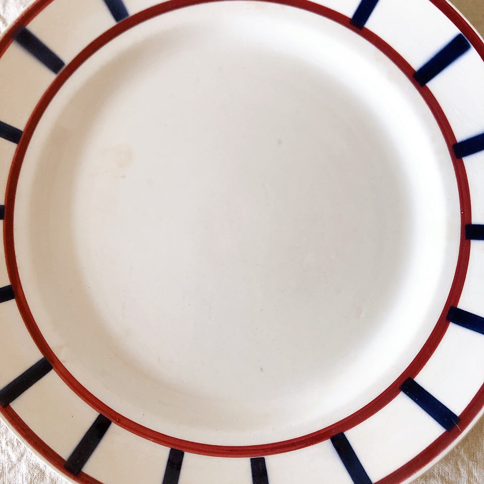 クレイユモントロー HBCM Béarn バスク柄 大皿 ラウンドプレート26.4 レッドxブルー フランスアンティーク食器 バスク柄プレート ブロカント 蚤の市