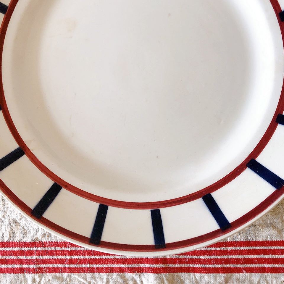 HBCM(Hippolyte Boulenger-Creil-Montereauクレイユエモントロー)窯製 Béarn モデルのバスク柄 大皿、ラウンドプレート、ボルドーxダークブルーカラーです 。