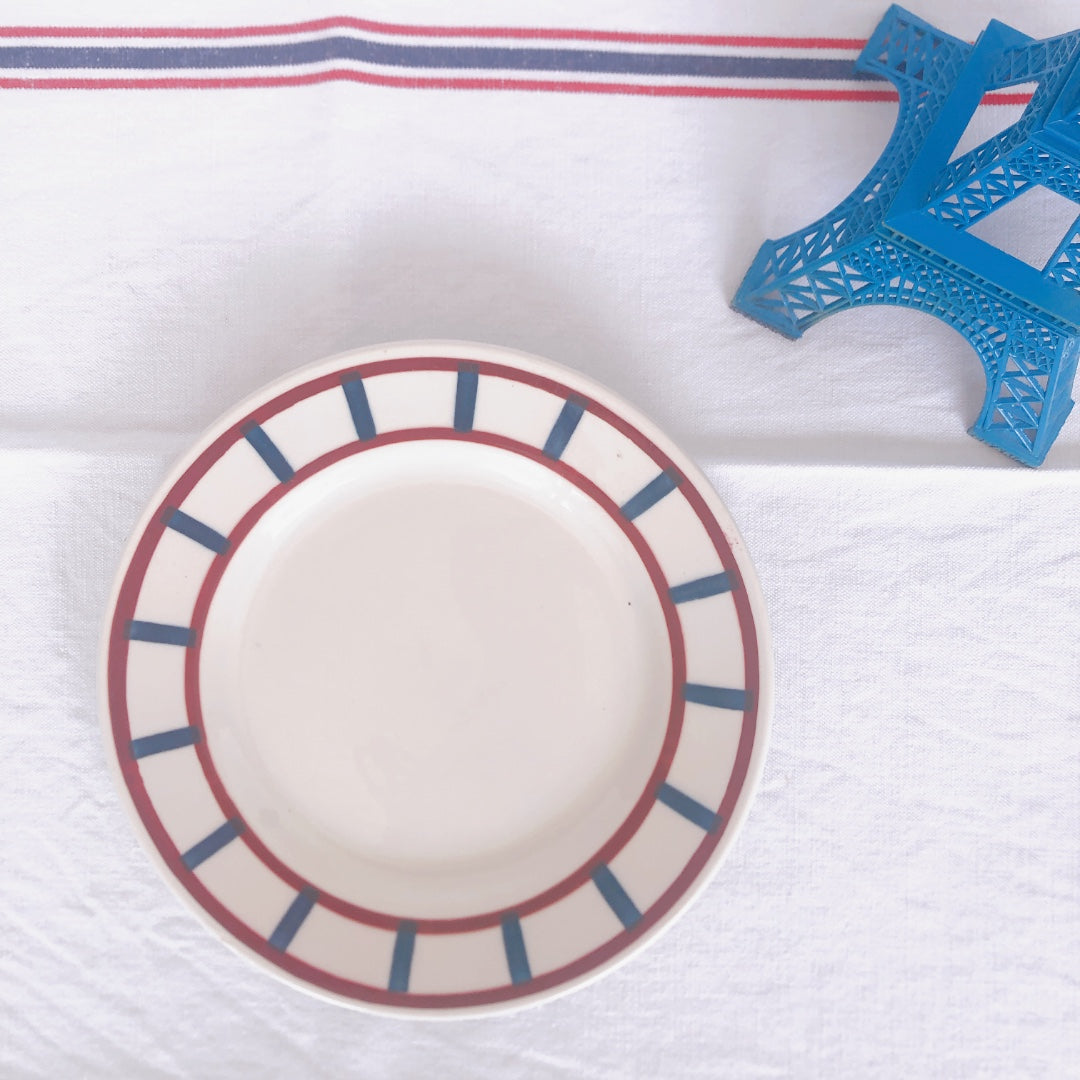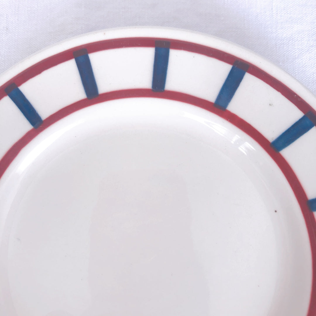 バドンヴィレー デザートプレート/平皿 バスク柄『レッド・ブルー』A フランスアンティーク食器 フランス蚤の市 ブロカント