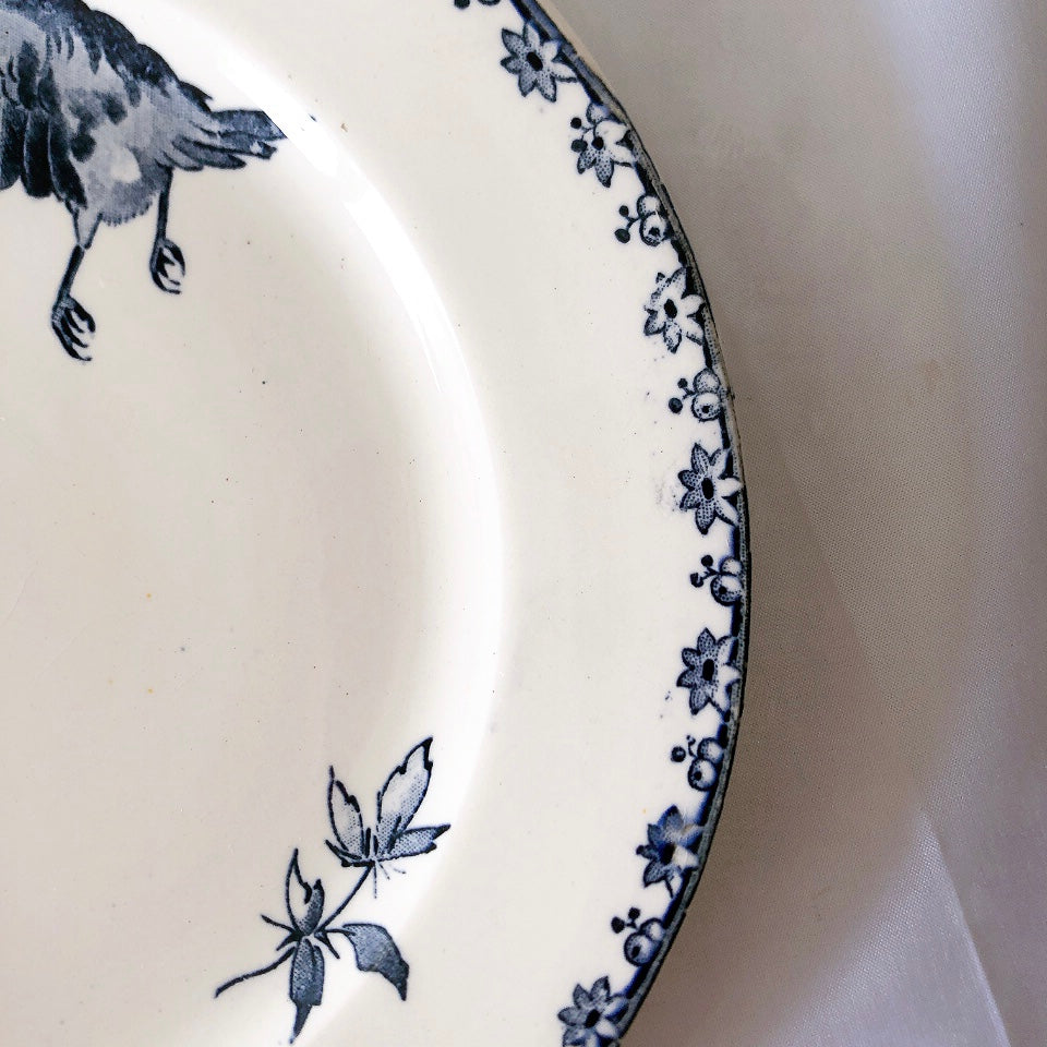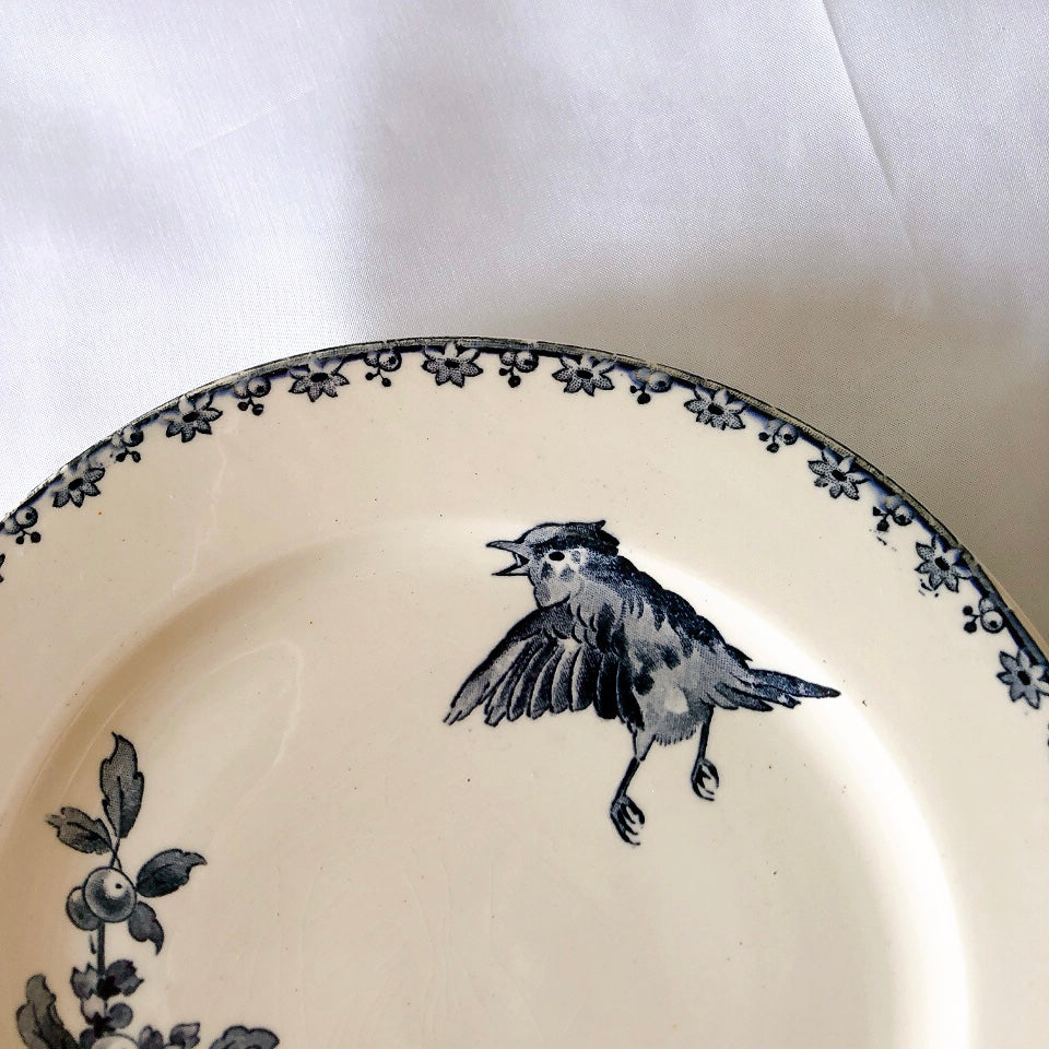 フランスアンティーク UCサルグミンヌ ファボリ『FAVORI』デザートプレート ブルー A ファイアンスフィーヌ フランスアンティーク食器 蚤の市 ブロカントアンティーク