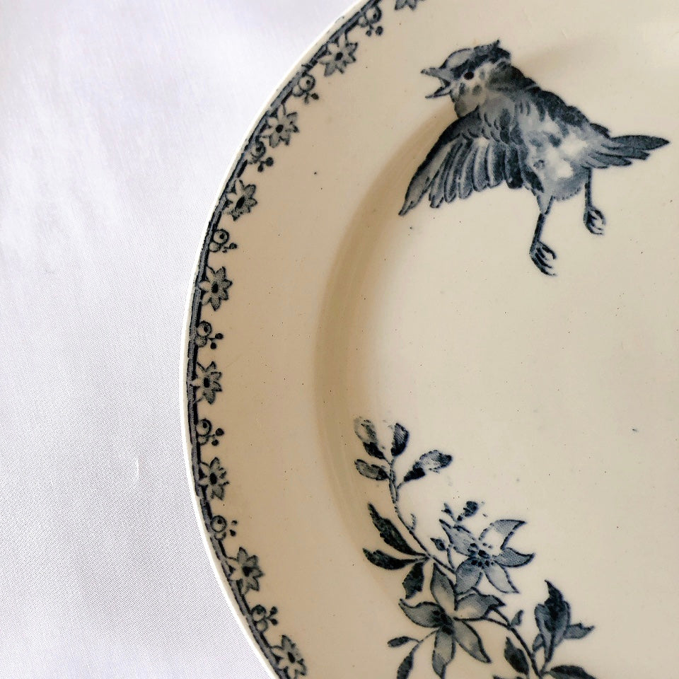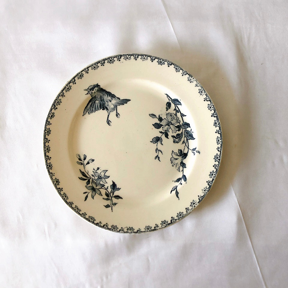 フランスアンティーク UCサルグミンヌ ファボリ『FAVORI』デザートプレート ブルー B ファイアンスフィーヌ フランスアンティーク食器 蚤の市 ブロカントアンティーク