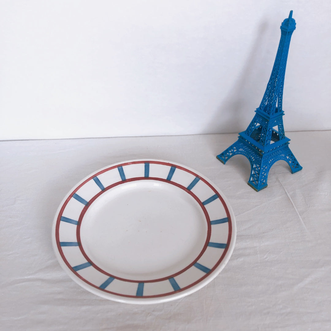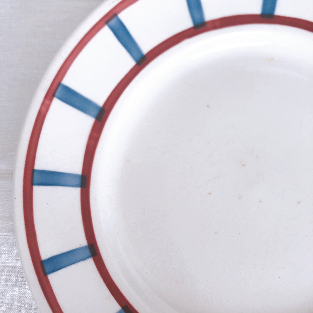 バドンヴィレー ディナープレート/平皿 23.8cm バスク柄 『レッド・ブルー』 フランスアンティーク食器 フランス蚤の市 ブロカント