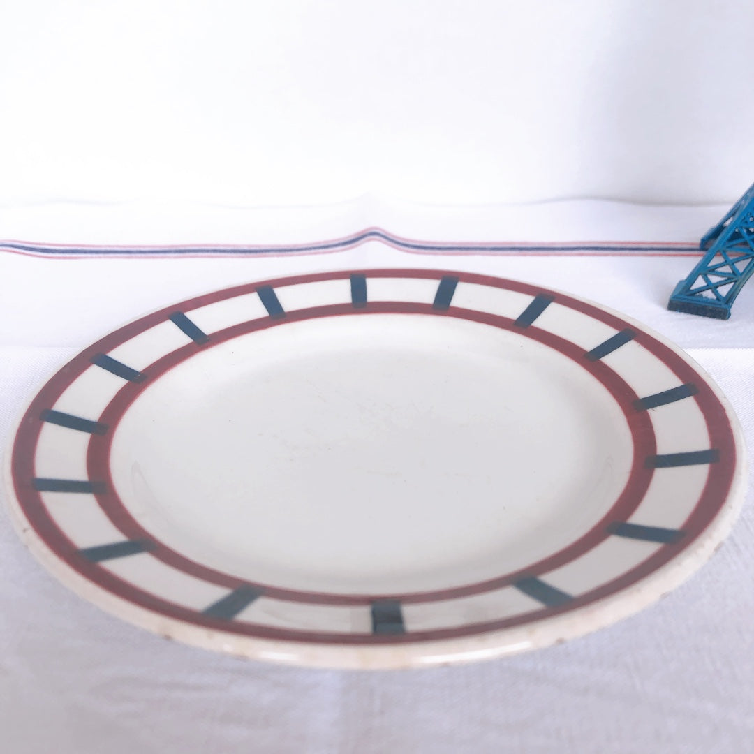フランスアンティーク バドンヴィレー バスク柄のデザートプレート、平皿です。