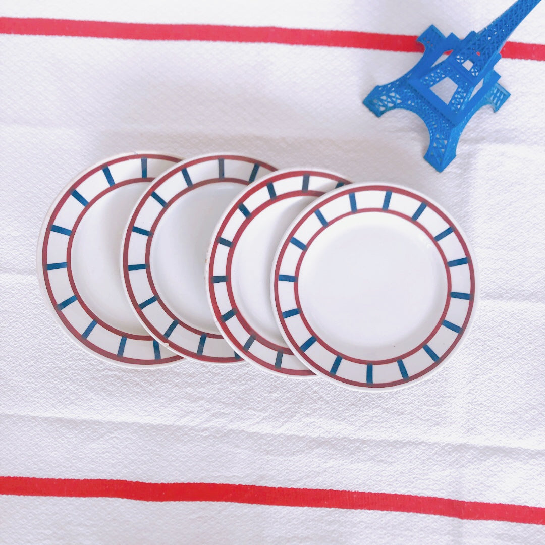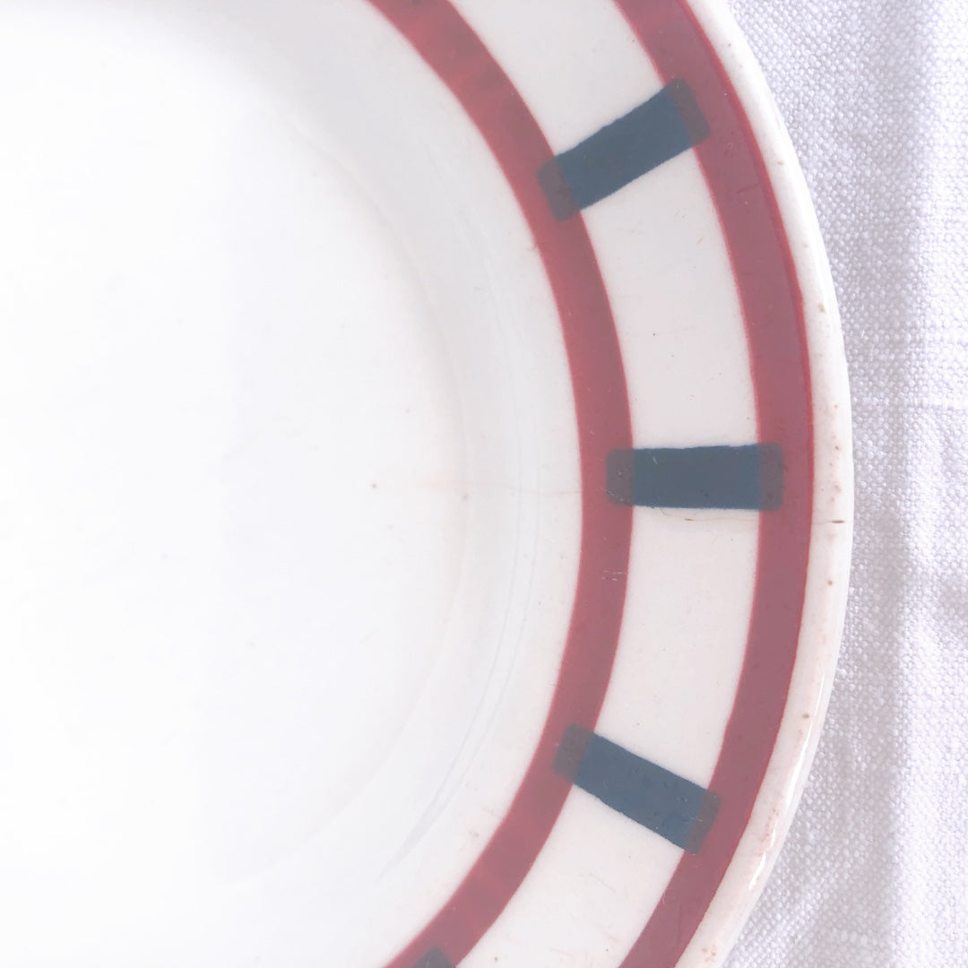 バドンヴィレー デザートプレート/平皿 バスク柄『レッド・ブルー』B フランスアンティーク食器 フランス蚤の市 ブロカント