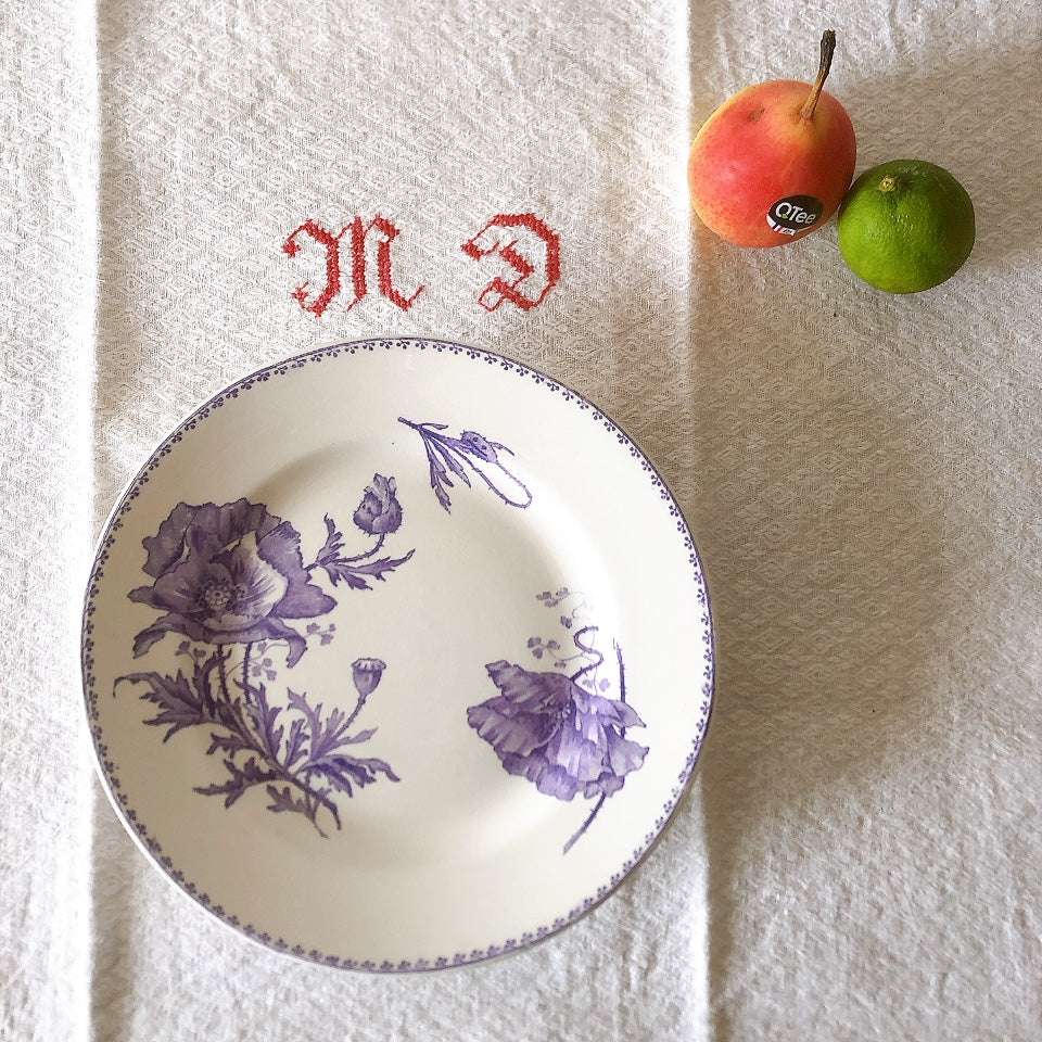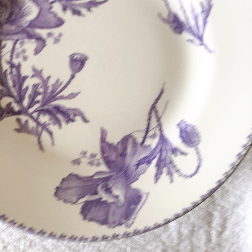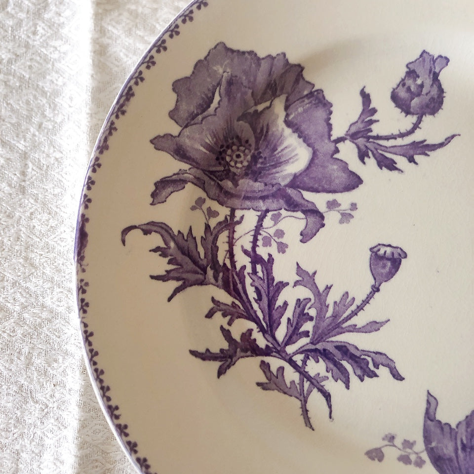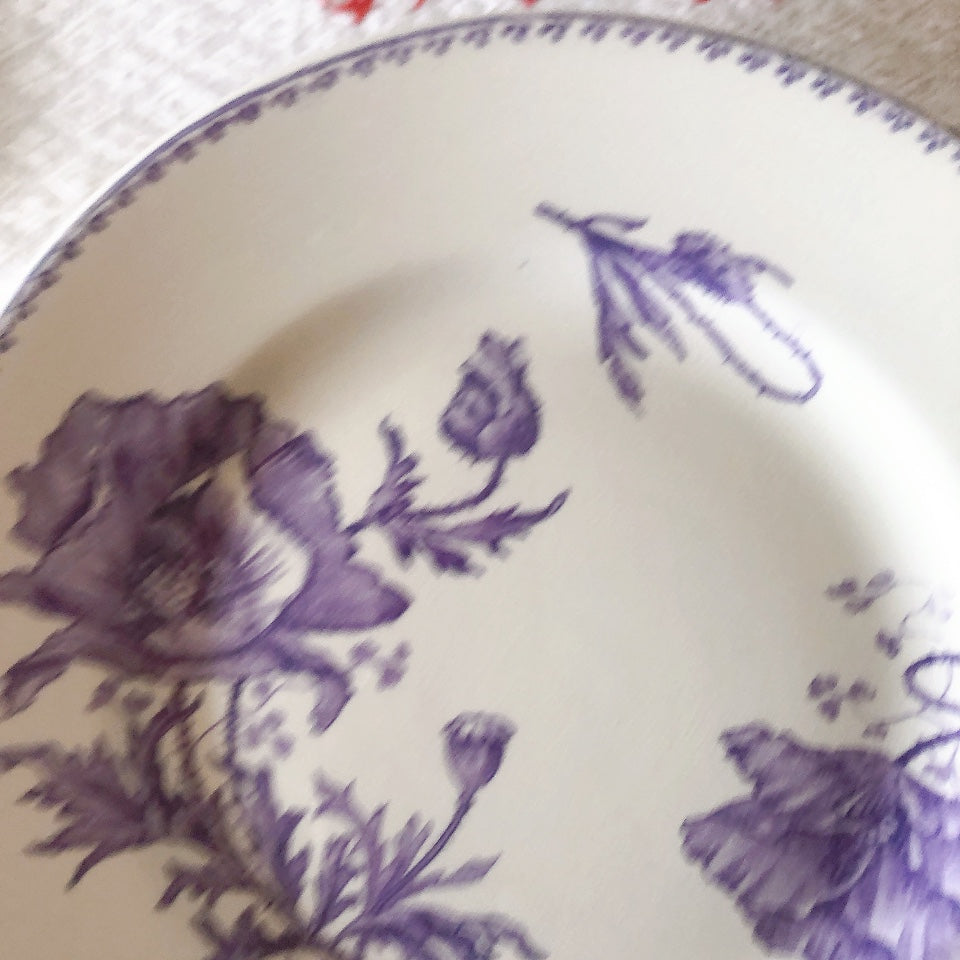 花柄やケシ(pavot)模様、希少でエレガントなラヴェンダーカラーです。日常に彩りや華やかさを添える逸品です♪