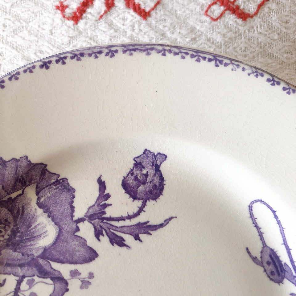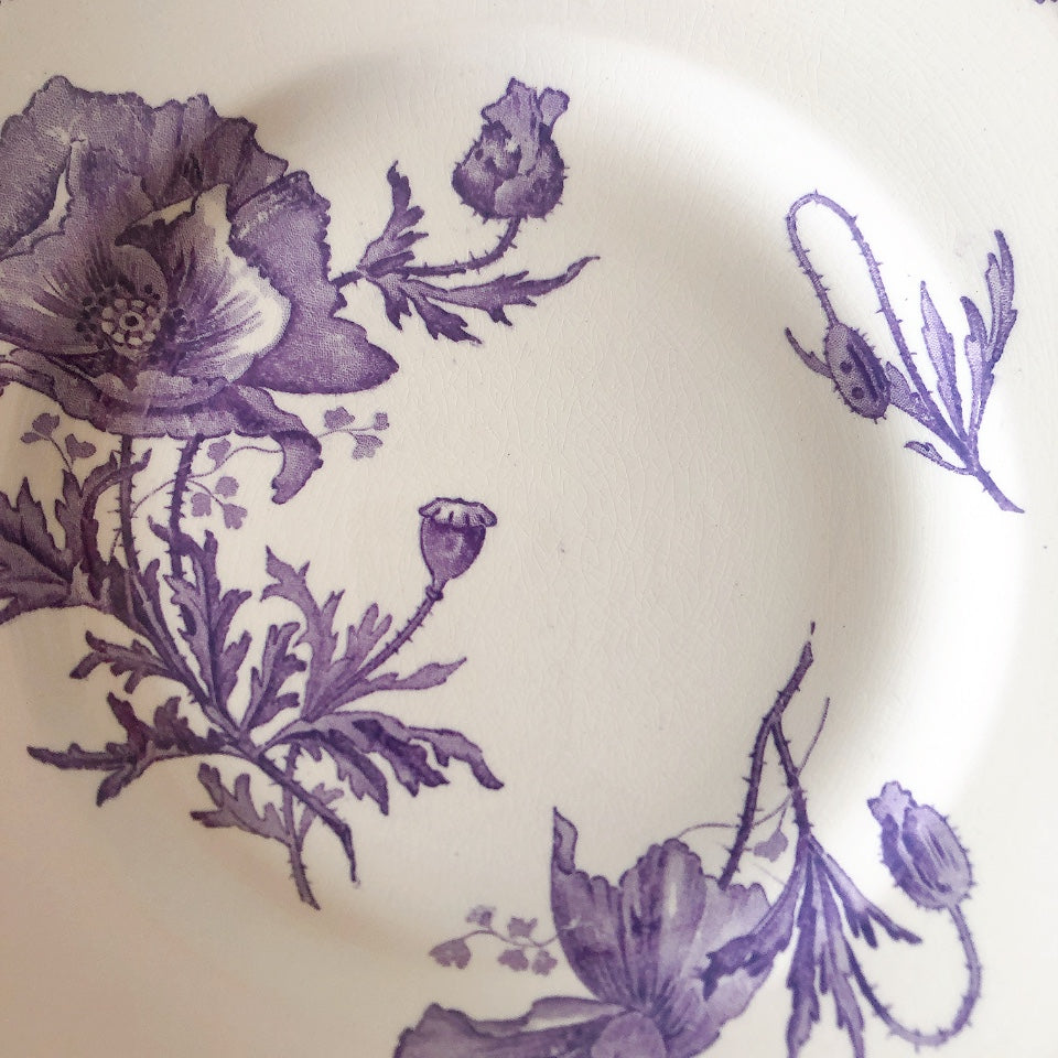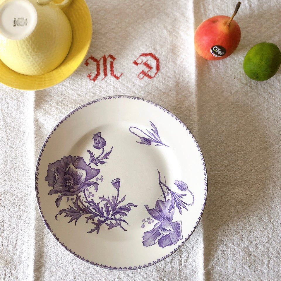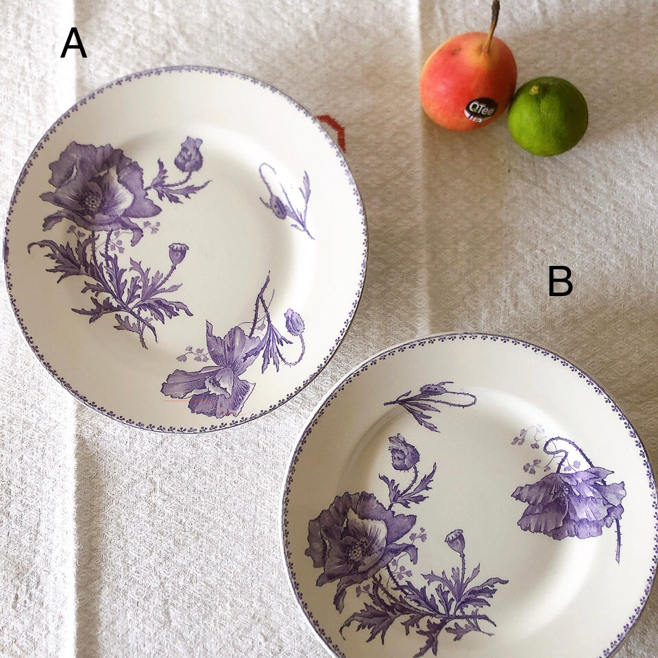 花柄やケシ(pavot)模様、希少でエレガントなラヴェンダーカラーです。日常に彩りや華やかさを添える逸品です♪