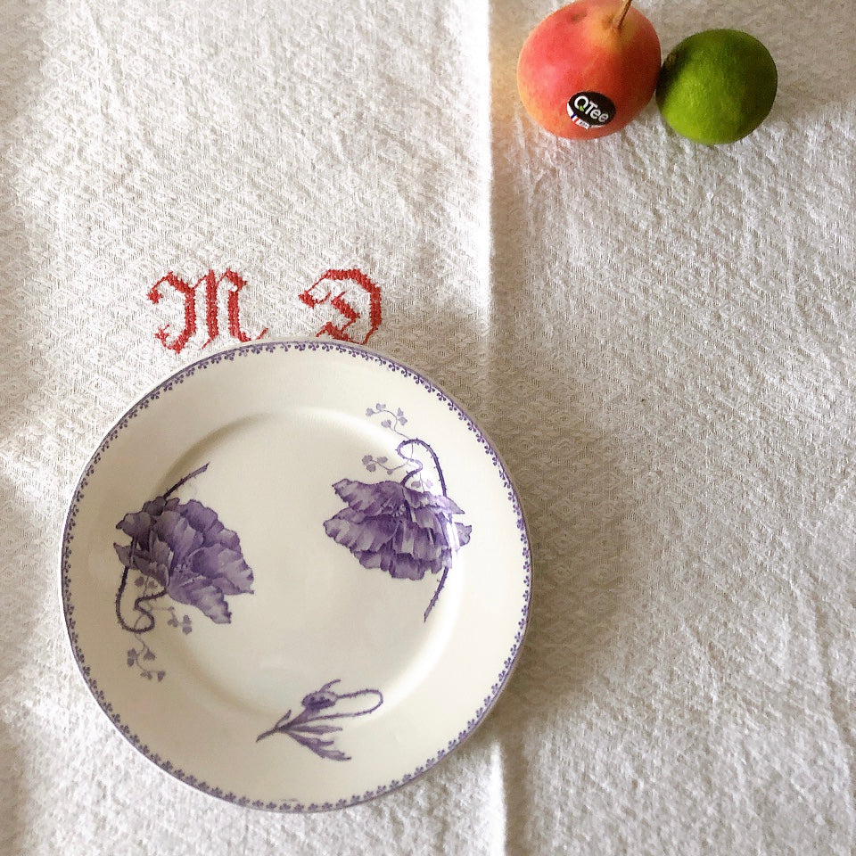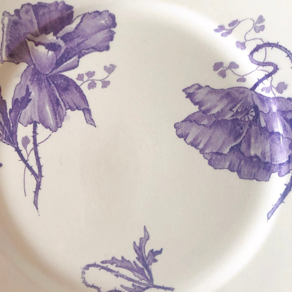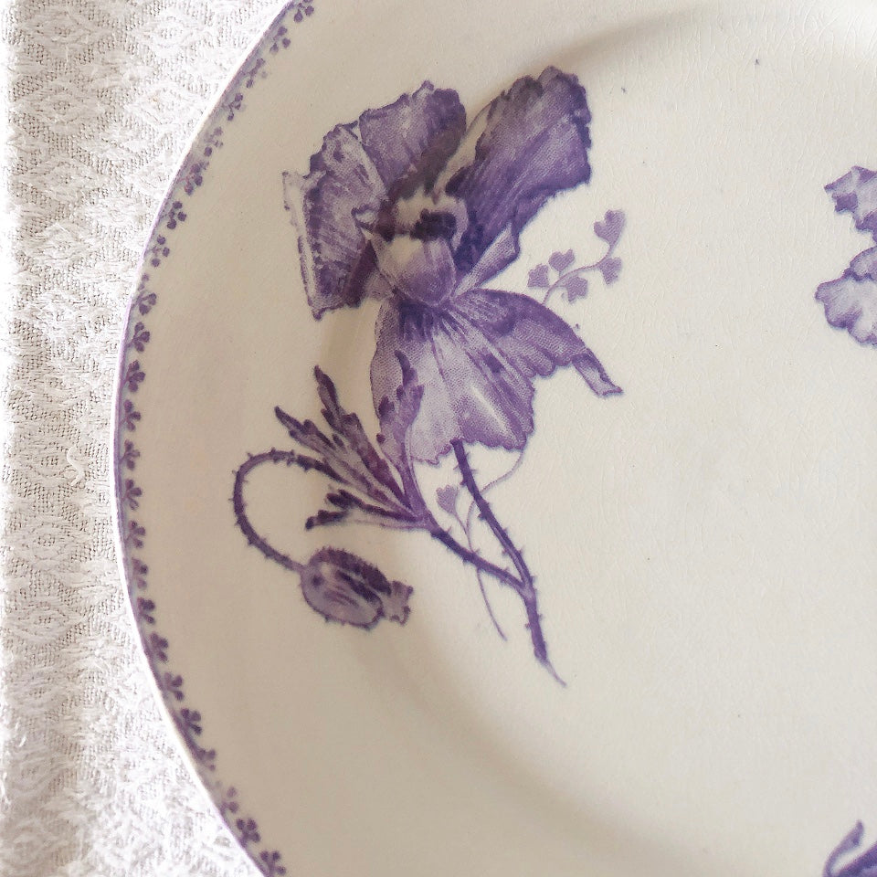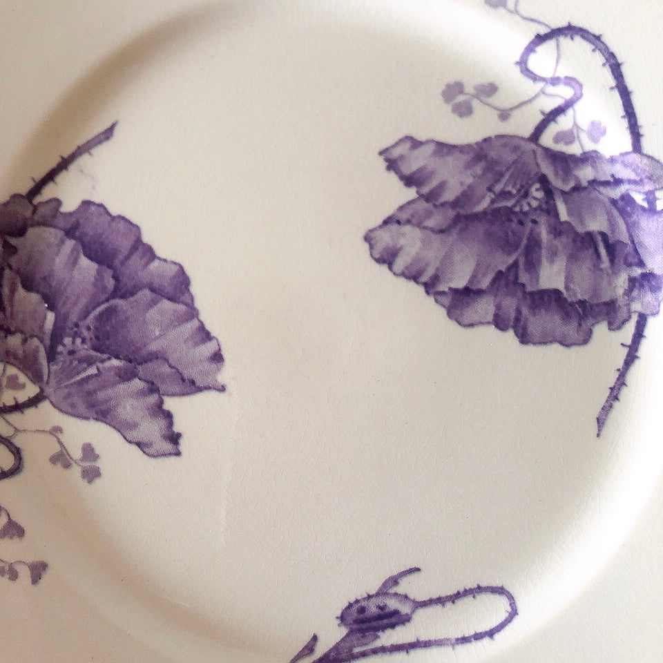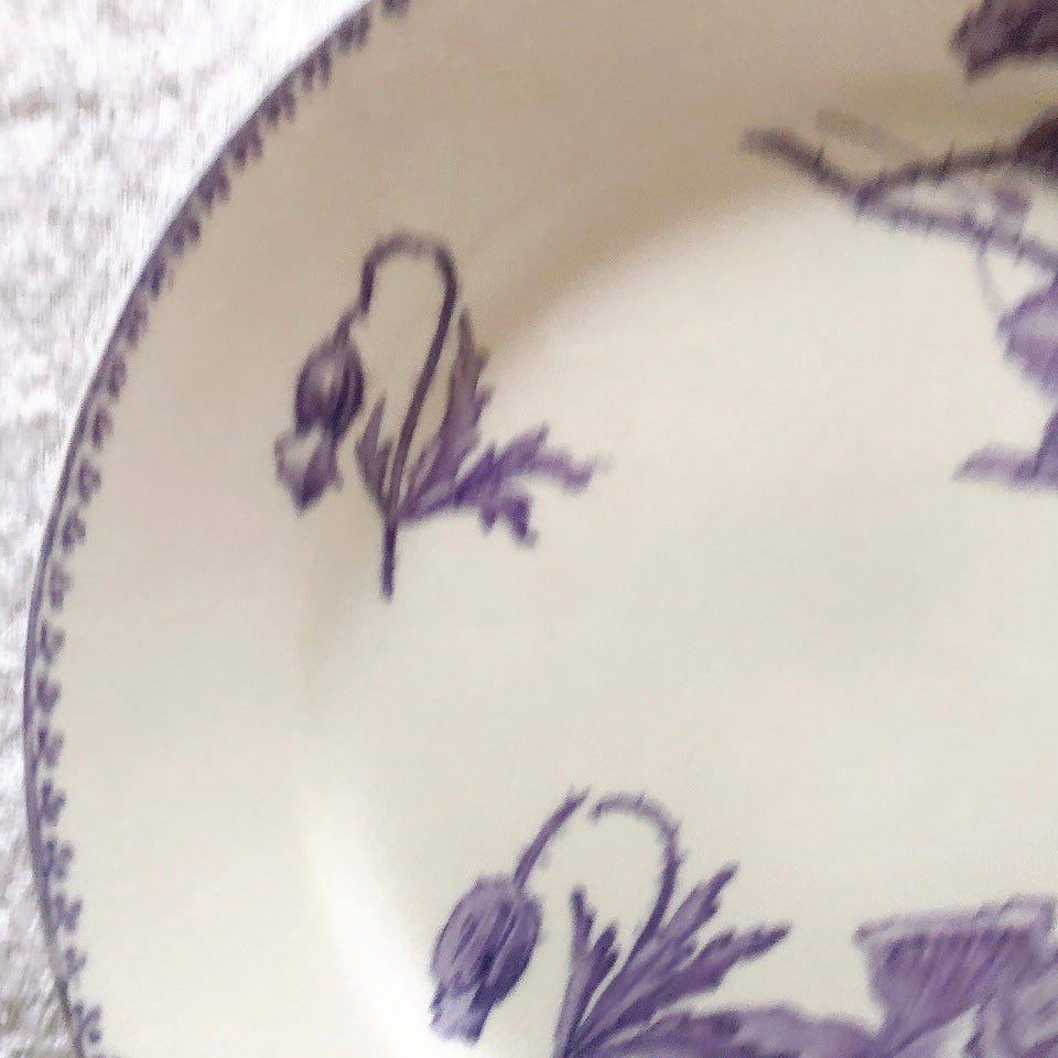 花柄やケシ(pavot)模様、希少でエレガントなラヴェンダーカラーです。日常に彩りや華やかさを添える逸品です♪