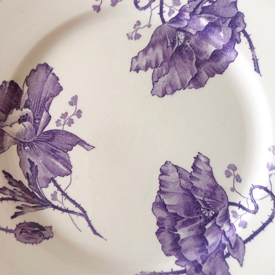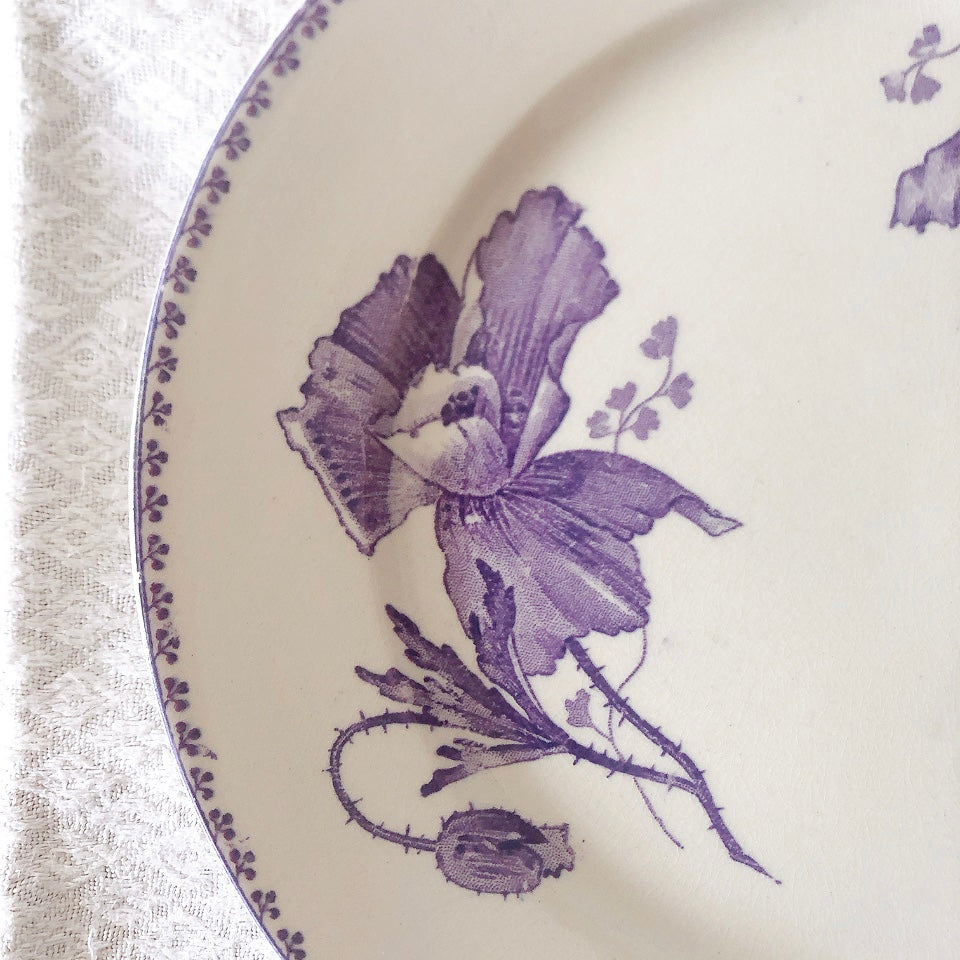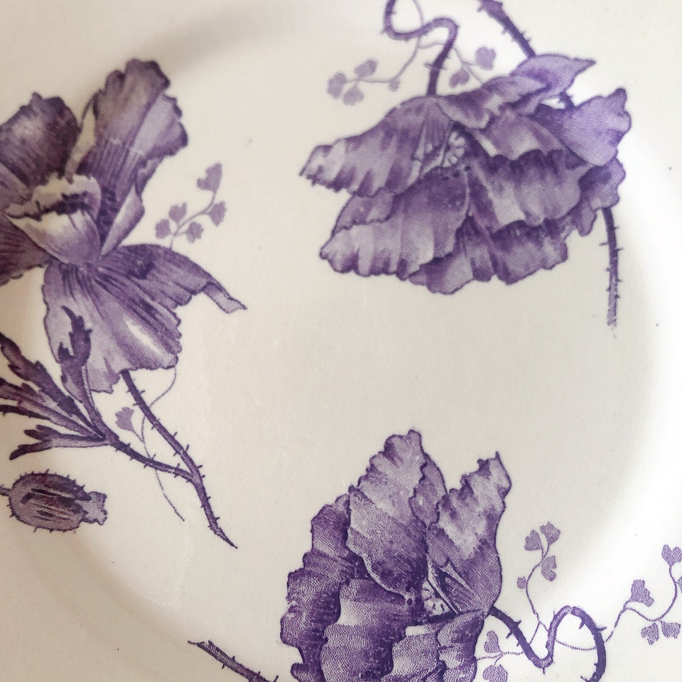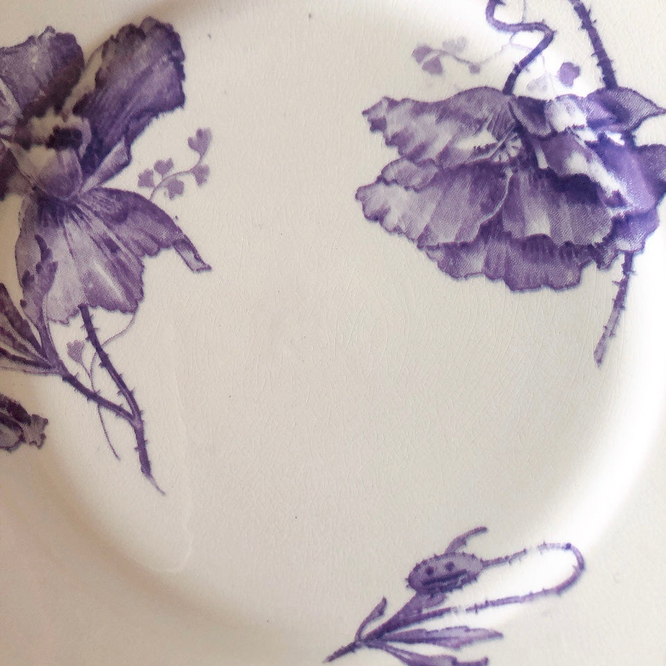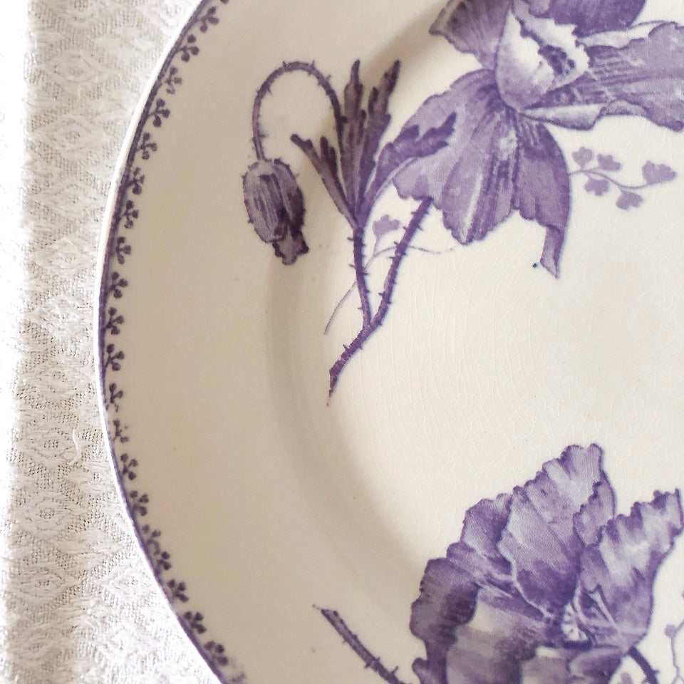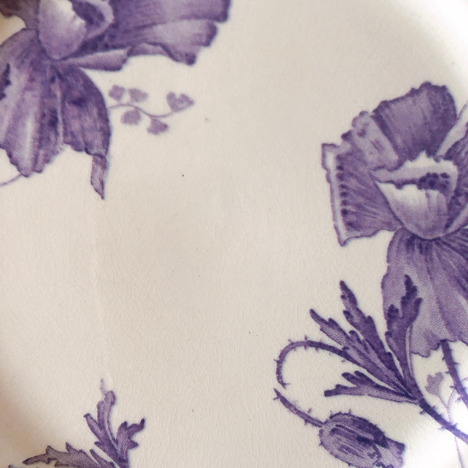 花柄やケシ(pavot)模様、希少でエレガントなラヴェンダーカラーです。日常に彩りや華やかさを添える逸品です♪