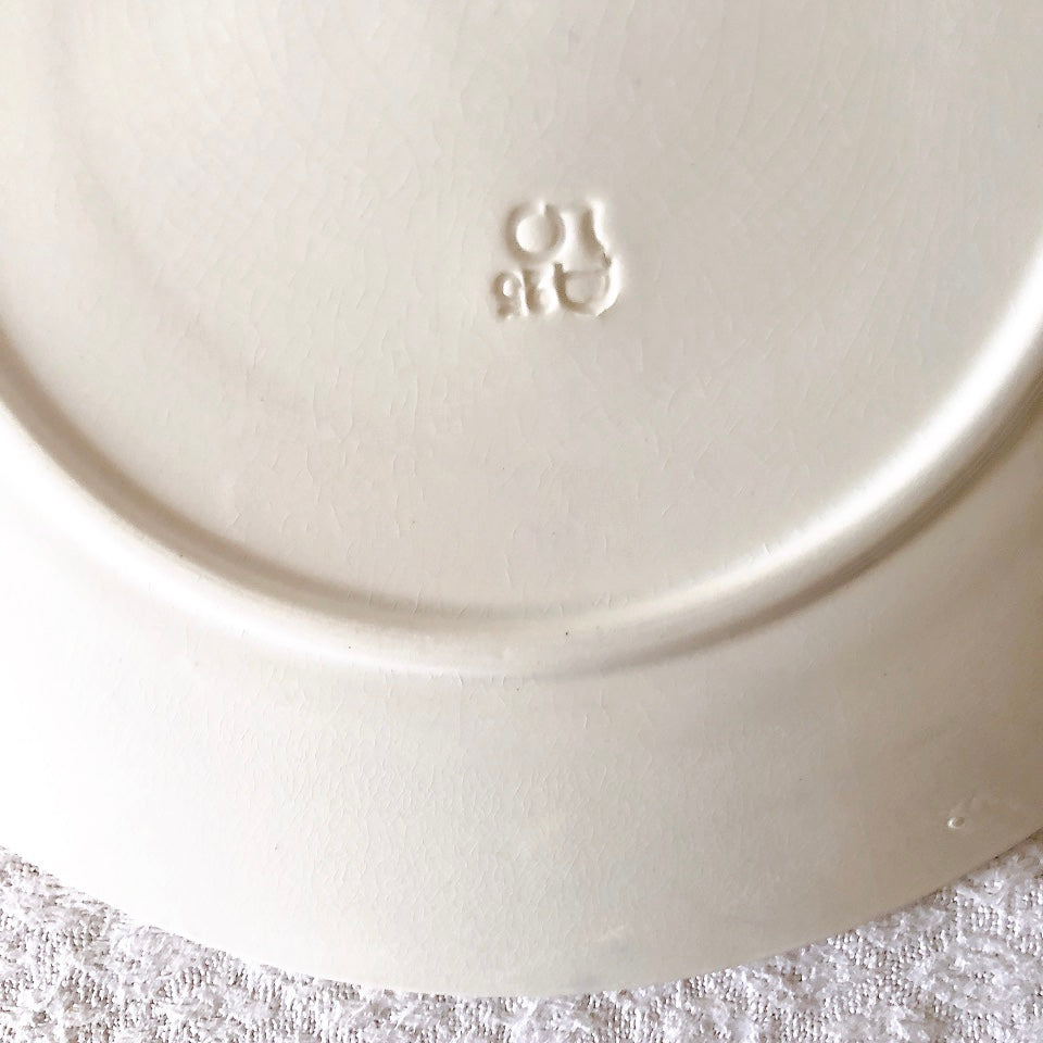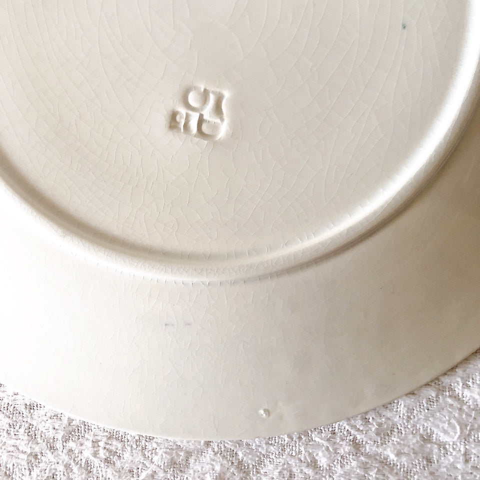 I: わずかなカトラリー傷、若干の色むら、縁に小さな製造時の凹み(上から釉薬で仕上げられています)、光の加減で貫入がみられます。